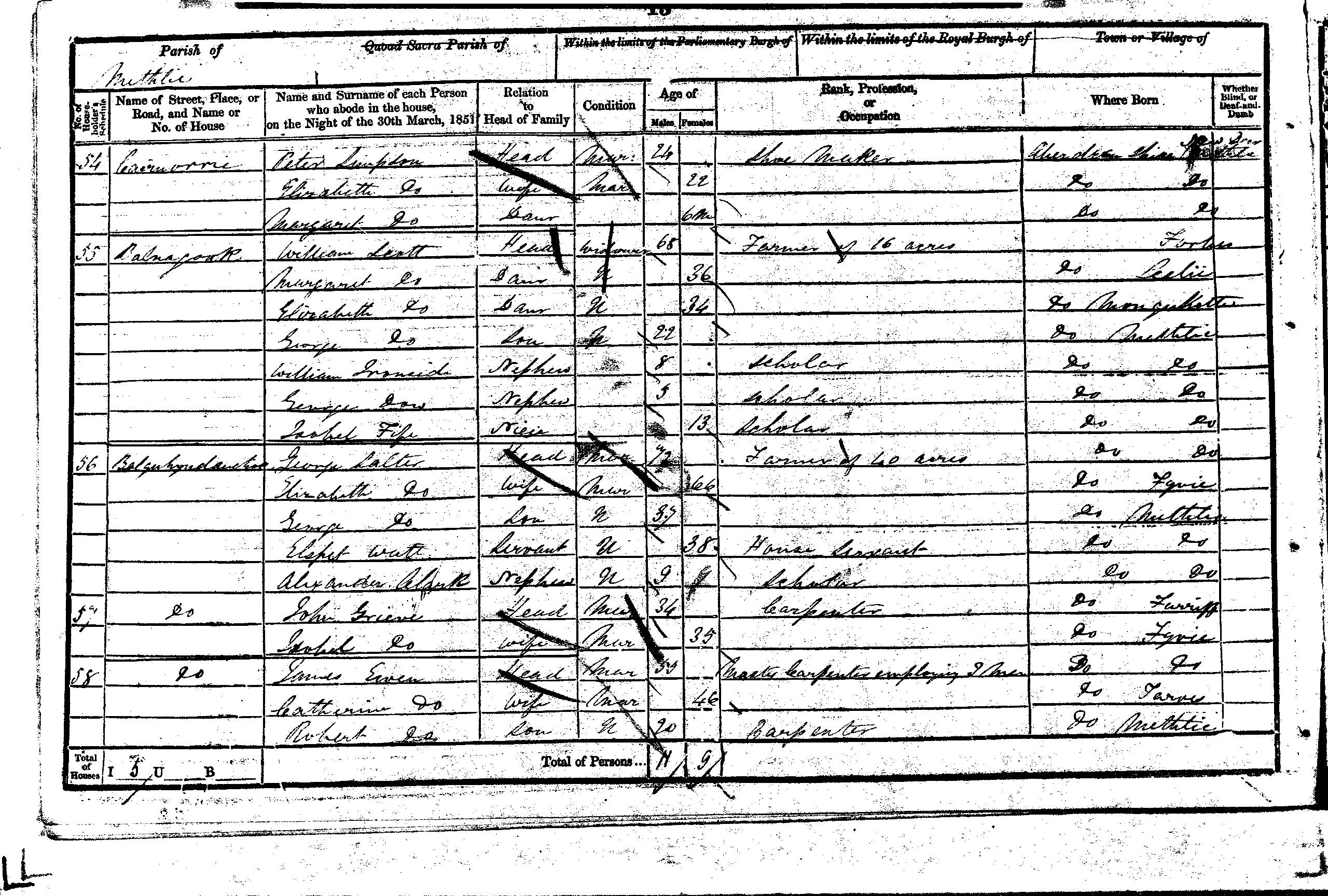 Census | 1841 (Age 58 years) Note: Living with William was wife Isabella , Jean Scott 20, Agnes Scott 8, and Isabella Fife 3(a neice). William was a crofter.