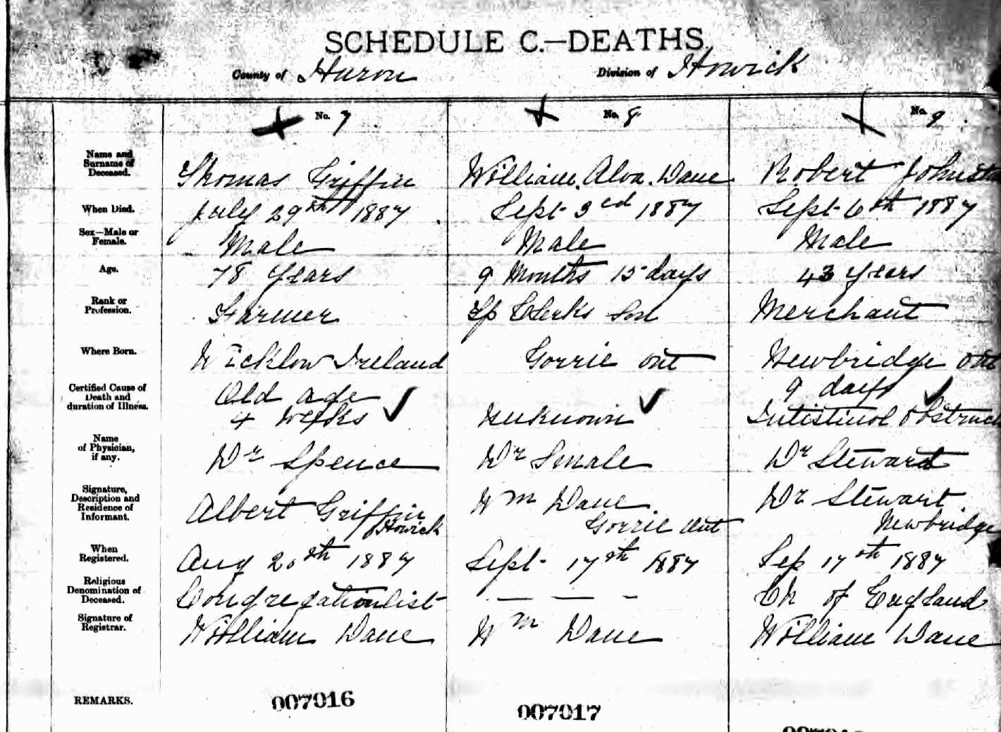 Death of a paternal grandfather | Thomas GRIFFIN July 29, 1887 (Age 6 years) |