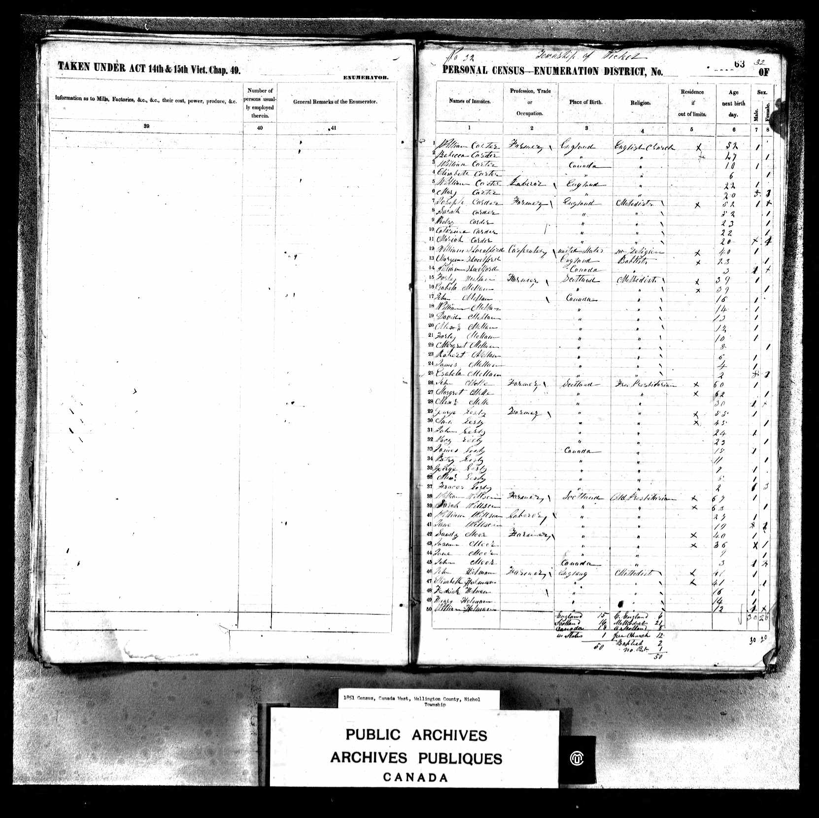 Residence | 1851 (Age 63 years) Note: John Milne and his wife Margaret Anderson were living next door to their son Fairley as listed in the 1851 census of Nichol township.