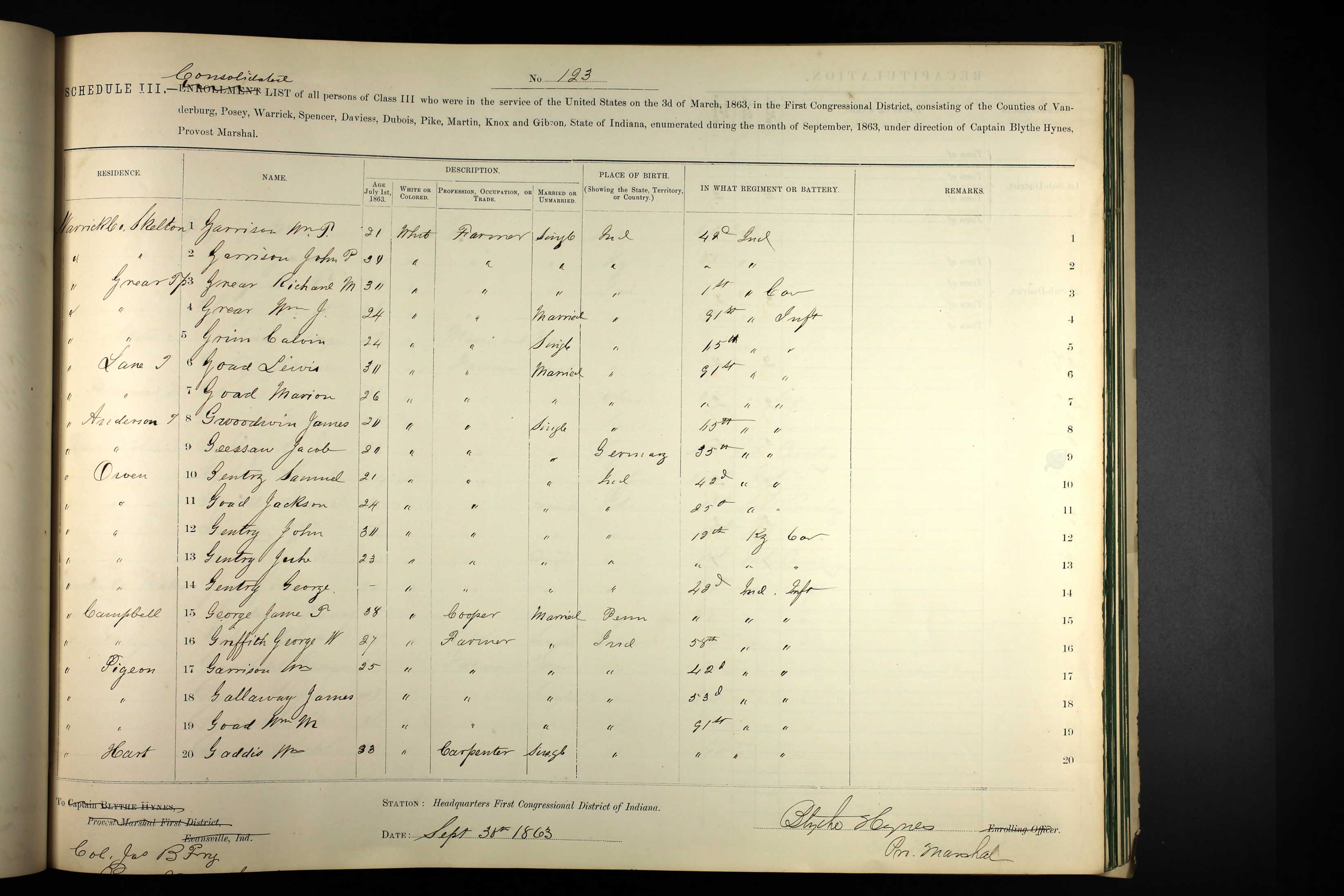 Note: Record from National Archives shows that William was drafted. It confirms that he was single, a carpenter, and was born in Indiana.