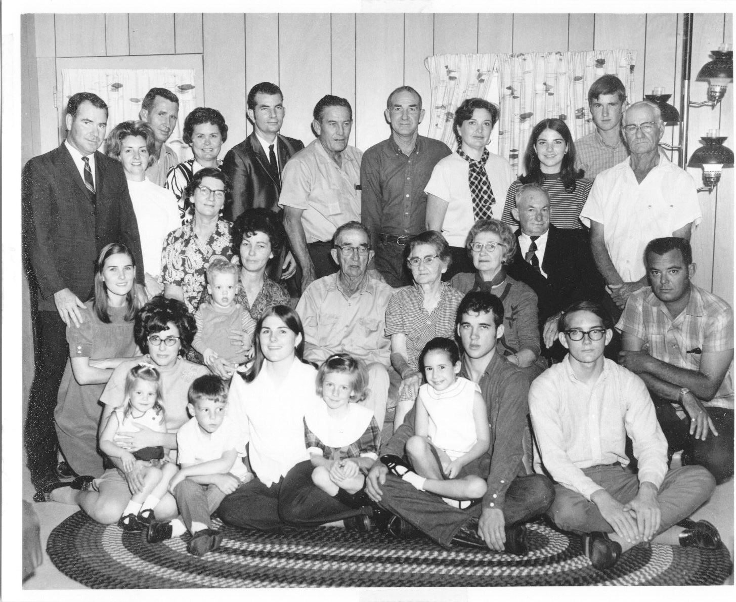 | Media object | Back Row: Jimmy Gann, Ann Nell, Pete Gann, Helen, Philip McCabe, Vin McCabe, Bob Gann, Ann, Lynn Gann, Larry Gann, Bill Magee 3rd Row: Edna McCabe, Dee Farrar 2nd Row: Donna McCabe, Ruth Ledbetter holding , Tom Gann, Alta MAGEE Gann, Mary Farrar, Gene Cox Front Row: Janey Cox holding Stephanie and Dennis Gann, Peggy McCabe, Denise Gann, Kenny Ledbetter holding Kelly Cox, Jimmy McCabe |
