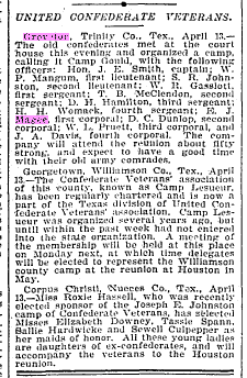 Birth: September 15, 1866 26 28 — Groveton, Trinity, Tx Death: May 14, 1941 — Eagle Lake, Colorado, Tx |