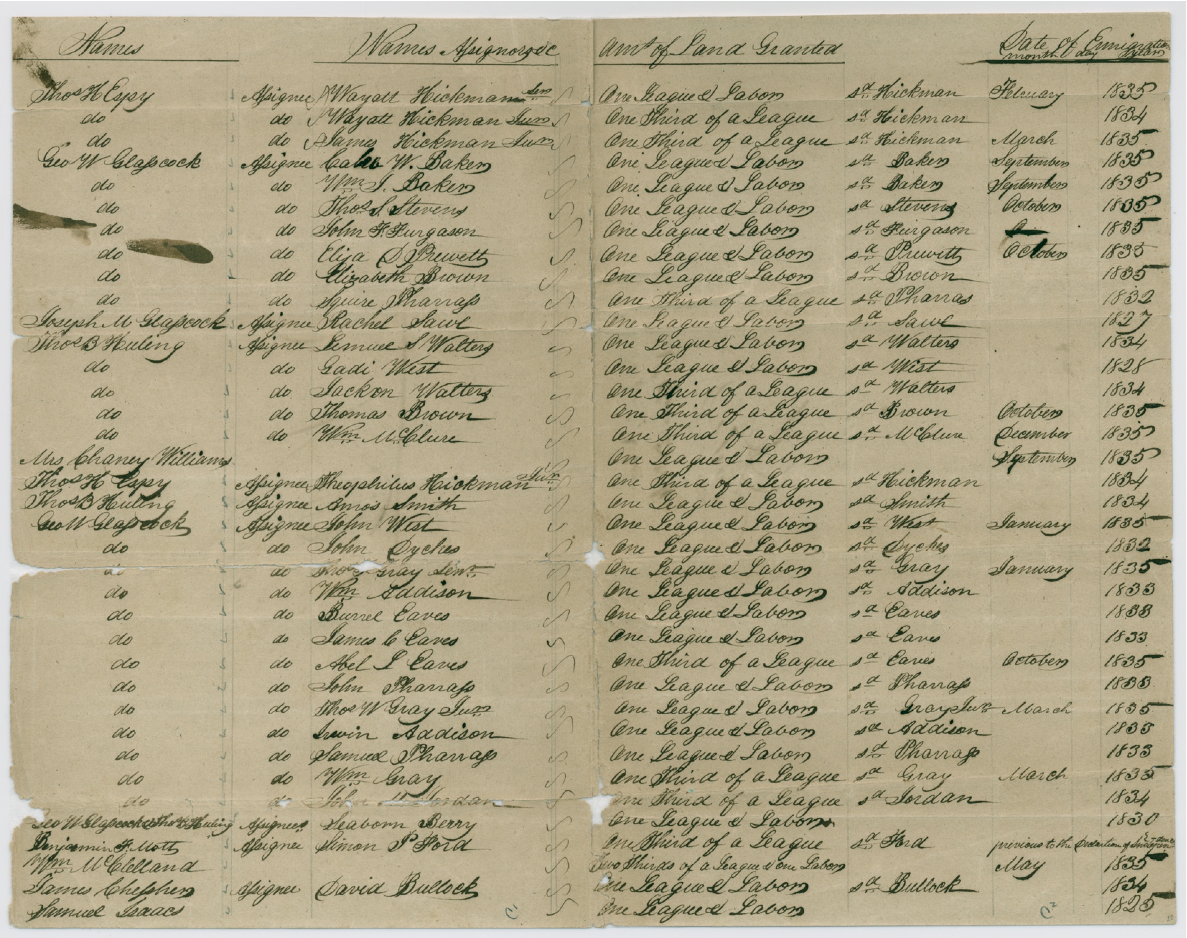 | Event | Elijah Prewitt appeared before the Land Commission in Jasper Texas in 1838 where he gave evidence that he arrived in Texas Oct 1835. Asa consequence he received a Headright to a League of Land which he sold to a Mr. Glasscock. |
