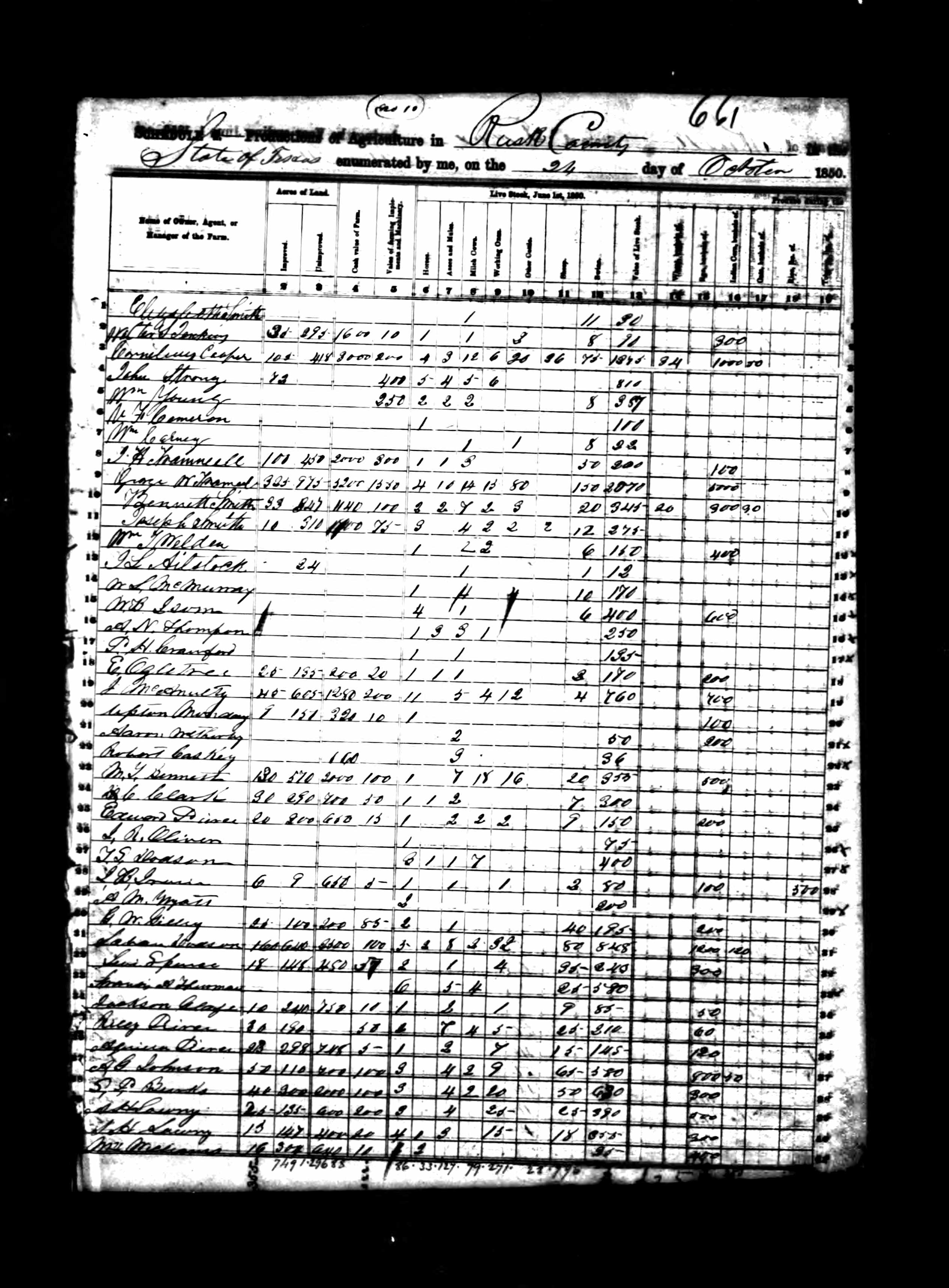| Census | M.Y. Bennett was farming 700 acres in Rusk Co, according to the Ag census of Oct 24 1850. |