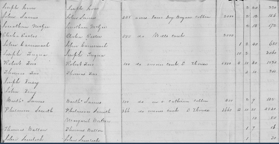 The 1795 assessment is digitized at Georgia’s Virtual Vault, http://cdm.sos.state.ga.us/cdm4/tax.php. I have delayed discussing this John Smith in depth until this entry, which places him paying taxes for both Jonathan McGee and William McGee. On a side note, I can account for how William McGee got 200 acres, but not for the other 70 1/2 acres. At any rate, Jonathan and William were not minors at this time, so that is not the reason why John Smith paid their taxes. I could offer several different explanations why John Smith was paying taxes for William and Jonathan, but whatever the explanation, the tax digest demonstrates a close relationship between these three men. Sidney Holdrege has suggested, and I agree with her conclusion, that John Smith was step-father to these McGee boys. This tax record, coupled with the fact that John Smith was “trustee” for Jonathan McGee in the 7 Nov 1785 land court record cited above strongly suggests (demands?) that the father of William and Jonathan McGee was dead before 7 Nov 1785. Indeed, we have one (and only one) deceased McGee man in the correct area before that date: Lewis McGee, who was dead before 17 May 1784, at which time a land warrant was issued to his unnamed heirs. I conclude, therefore, that Lewis McGee was the father of William and Jonathan McGee. 4 Jan 1800 – John Smith and Elizabeth (x) his wife to George Walker, for $1500, sold tract on which sd Smith now resides, on both sides of Spirit Creek, in two surveys and grants, one in the name of Caleb Cox containing 287 ½ acres, the other in the name of sd Smith containing 500 acres....and according to a resurvey totals 1276 acres; wits. Geo. Allen, Free. Walker, Val. Walker; 6 Jan 1800, Elizabeth (x) Smith relinquished claim to the within; Recorded 8 April 1800. (Richmond County, GA Deed Bk G, 498-500). 9 Jan 1800— (two days after the deed above) John Smith “of Spirit Creek” in Richmond County made his will. The abstracted version reads, in part, “As my living wife before she married me saw fit to secure all her property to her children, I leave her twenty five cents.” He also named three nephews living in Scotland. Executors were Alex. Graham, Edward Primrose, witnesses Holland McTyeire, Seaborn Jones, Lucy Heard. The will was probated 6 Oct 1801 (Gilliam, “Records of Richmond County, Georgia,” 58). The language of the will infers that his present wife had children by a previous marriage. This supports my position that John Smith’s wife Elizabeth was the mother of William and Jonathan Magee. 22 Jan 1801—Deed Hugh Magee of Richmond County to Charles Burch, $500, 200 acres in the fork of Spirit Creek. (Richmond County, Georgia Deed Bk H, 204); same date 22 Jan 1801---Deed Hugh Magee of Richmond County to Edward Burch, for $500, sold 150 acres on Spirit Creek. (Richmond County, Georgia Deed Bk K, 331). 6 March 1804—James Scott, Sheriff of Richmond County, at the suit of Edward Burch against Edward Primrose, Exr. of estate of John Smith decd., sold to Edward Burch (in behalf of Gideon Seely), for $120, tract on Little Spirit Creek containing 287 ½ acres. (Richmond County, Georgia Deed Bk K, 1). 20 July 1805—Deed Hugh Magee of Richmond County to Joseph Ware, for $100, sold tract 1675 acres on Big Spirit Creek. (Richmond County, Georgia, Deed Bk L, 108). 28 Sept 1812—Will of Hugh Magee of Richmond County. Named wife Mary, son William Henry Magee, minor. Probated 6 Sept 1813. (Davidson, “Records of Richmond County, Georgia,” 50). SUMMARY At this point, I give the following general reconstruction. Hugh Magee and his close relation Lewis Magee (probably his brother) arrived in Richmond County, Georgia before the American Revolution, and settled in the lower section of the county, in the area of Spirit Creek. They were both active patriots in the Revolution, with Hugh serving as a Magistrate, and both men serving together at least one tour in the local militia under Capt Jeremiah Beal. At some point in the war, probably 1780 or 1781, the encroachment of the British forced these men to flee their homes as refugees. Sometime shortly after their return to Georgia, Lewis Magee died. The warrant for the Revolutionary War bounty land due him was issued 17 May 1784, upon the petition of Hugh Magee on behalf of Lewis’ heirs. After Lewis Magee died, his widow Elizabeth remarried to John Smith. She married him prior to 7 Nov 1785, when warrant was issued to John Smith as “Trustee” of Jonathan Magee for a headright of 200 acres in the area of Spirit Creek. Jonathan Magee was probably at the cusp of coming of age at the time of the warrant. His brother, William, had already come of age himself when he petitioned for a 200 acre headright on 2 Oct 1786 for land relatively nearby. John Smith paid taxes for both William and Jonathan in 1795. In closing, I would like to return to the two questions that I posed in paragraph two: (1) How early did William and Jonathan Magee come to live in the area of Spirit Creek?; and (2) what other Magee/McGee men were living in that area during that general time frame who could have been their father? The answer to question (1) is that they were in the area of Spirit Creek at the close of the Revolution, and may have been there for some time before that. The answer to question (2) is that the only two Magee men who I have been able to locate in this area during this time frame were Hugh and Lewis Magee. I think it is fairly obvious that Hugh was not their father. Hugh did not go with William and Jonathan to Mississippi, and he did not name them in his will. The evidence presented herein, however, leads to the fairly strong conclusion that their father was Lewis Magee. Submitted by Bevin Creel: April 2012 ▼References ↑ Estimated from births of children. |