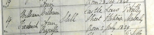 Birth of a sister | Frances STILL June 1850 (Age 13 years) |