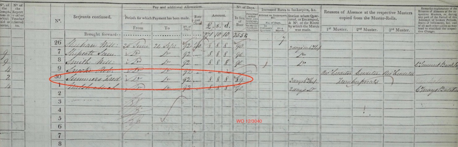 | Military | Frederick Summers appeared in musters and soldier lists of the 35th Foot from 1805-1816. |