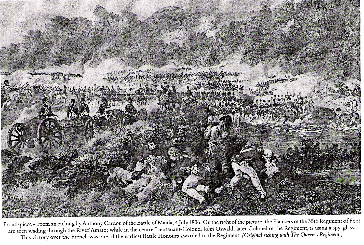 | Media object | Only the first battalion of the 35th Foot fought at San Pietro di Maida in Calabria, Italy against the Napoleonic forces. Frederick was probably still in England at the time of the battle since it was reported the 2nd Battalion did not arrive in Sicily until July 9, 1806. |