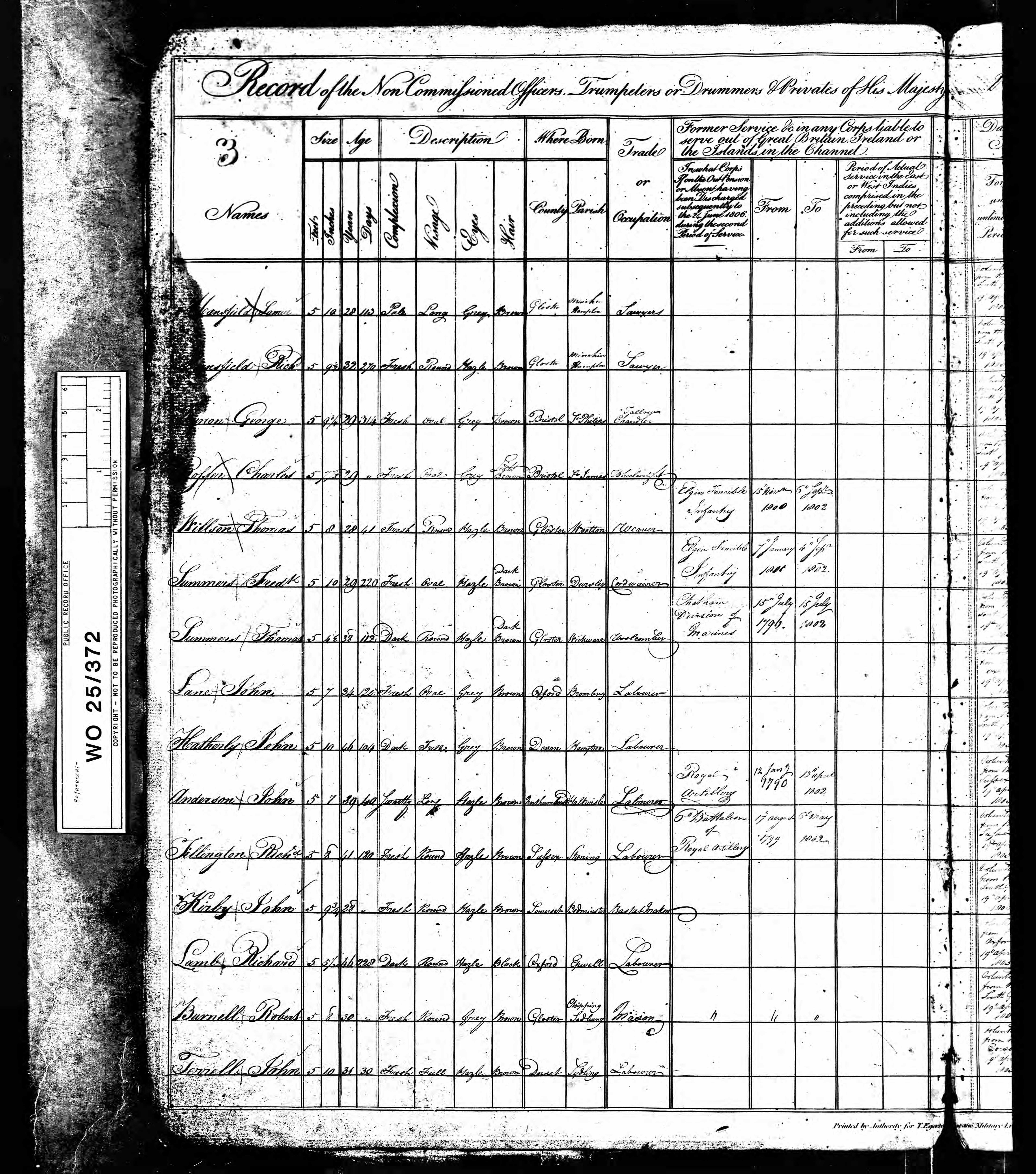 | Birth | Frederick Summers - 35th Foot Soldiers List Format: application/pdf File size: 228 KB Type: Document Highlighted image: no Note: WO 25/372 from the British Archives has information on Frederic Summers including his age, place of birth, date of separation from the Army. It also states he was a Volunteer from the South Gloucestershire on 19 Apr 1805.