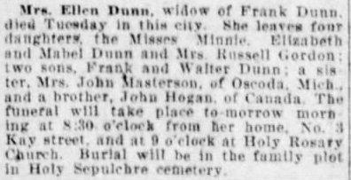 Jennie DUNN Death: August 7, 1890 — Rochester NY |