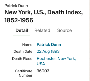 Death of a paternal grandfather | Patrick DUNN August 22, 1893 (Age 7 years) |