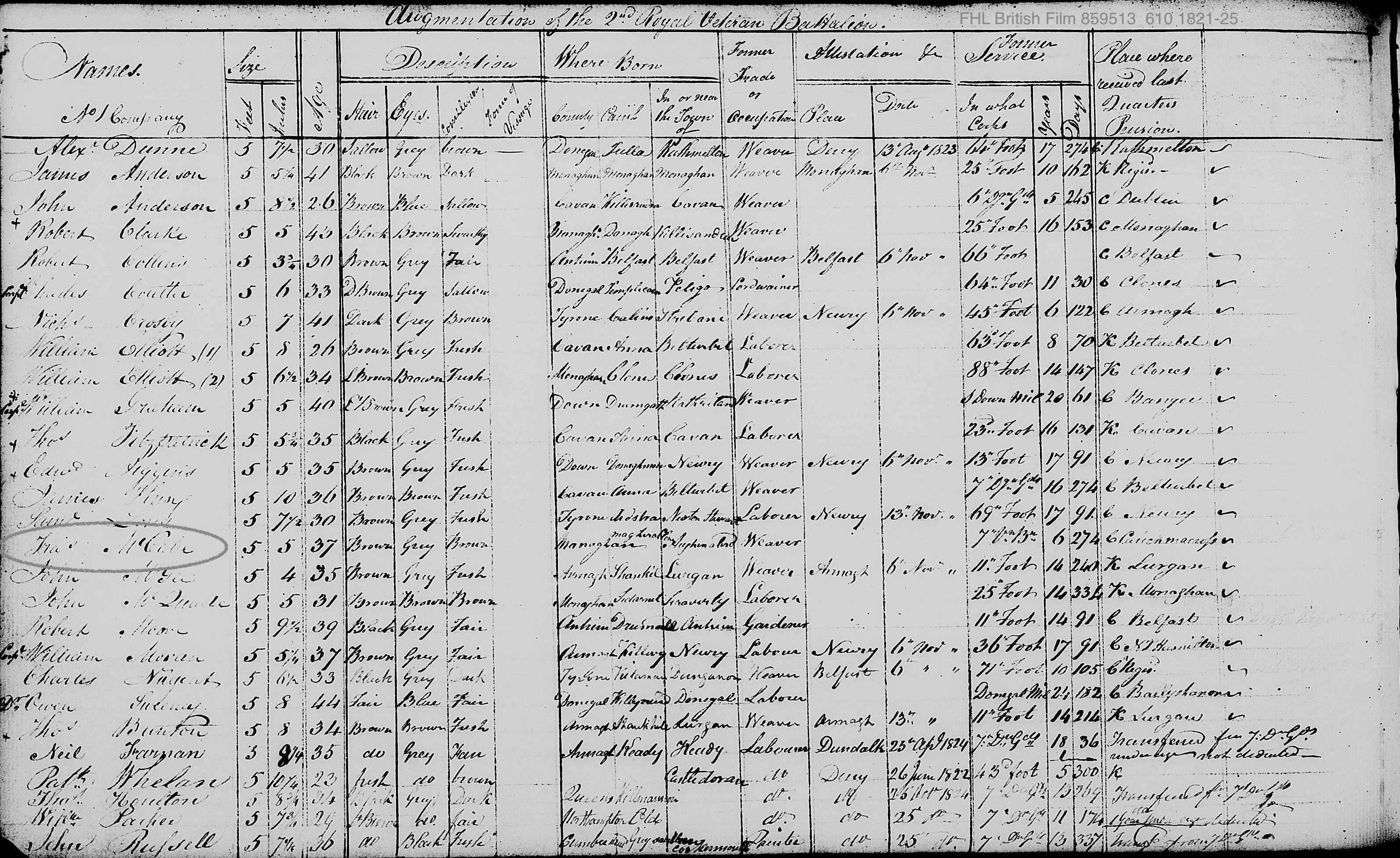 Military | 2nd Royal Veteran Battalion - British Army 1823 (Age 40 years) |