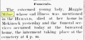 Death of a daughter | Margaret MILNE July 28, 1886 |