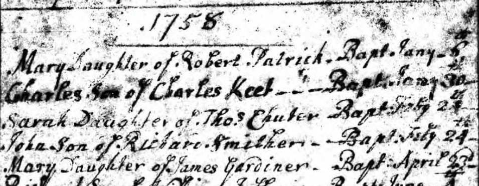 Birth of a daughter#1 | Sarah CHUTER February 24, 1758 (Age 22 years) |