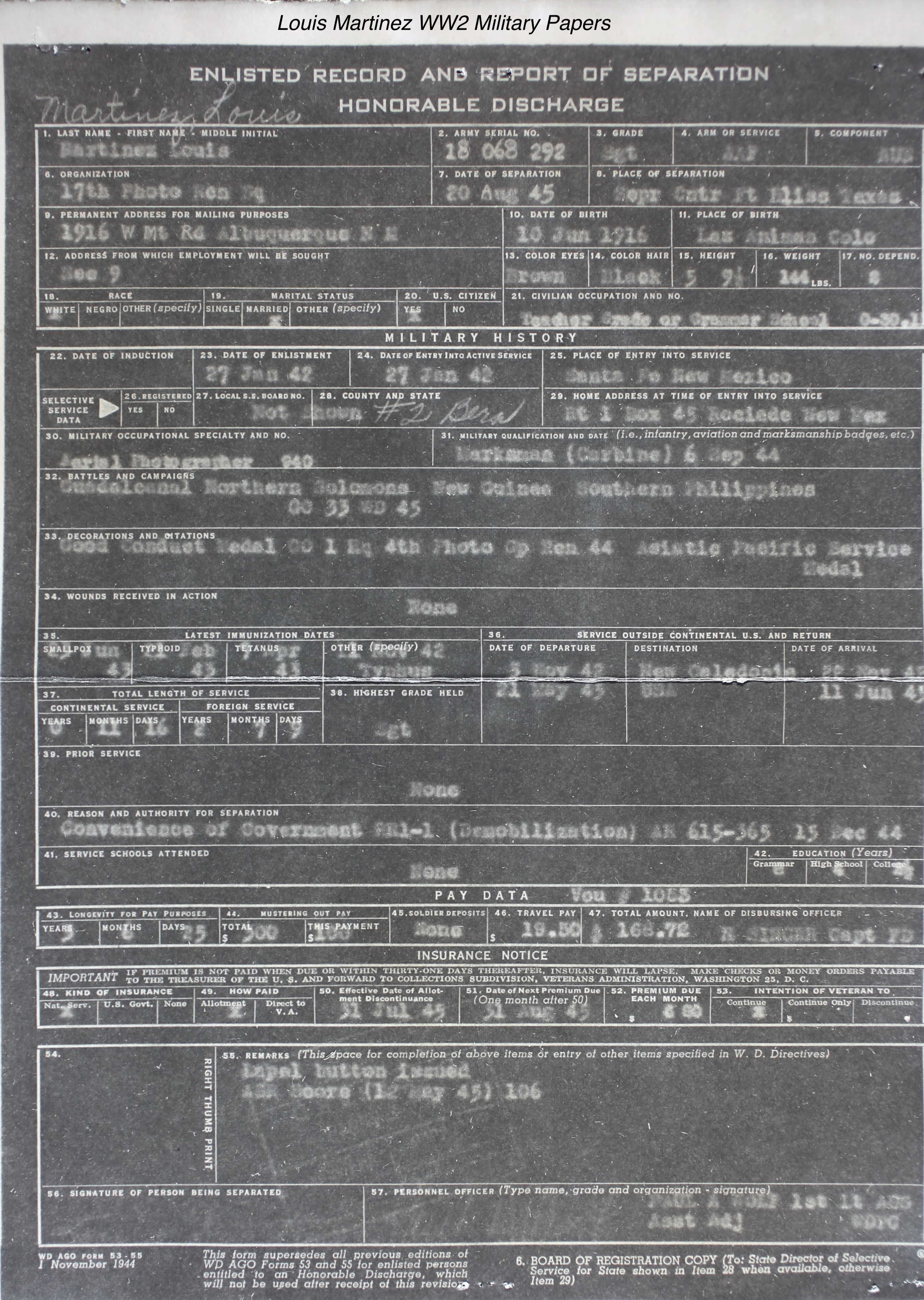 | Military | Louis' draft registration verifies that he was born in Las Animas County Colorado. He didn't wait to be drafted but join the Army a month after Pearl Harbor. |