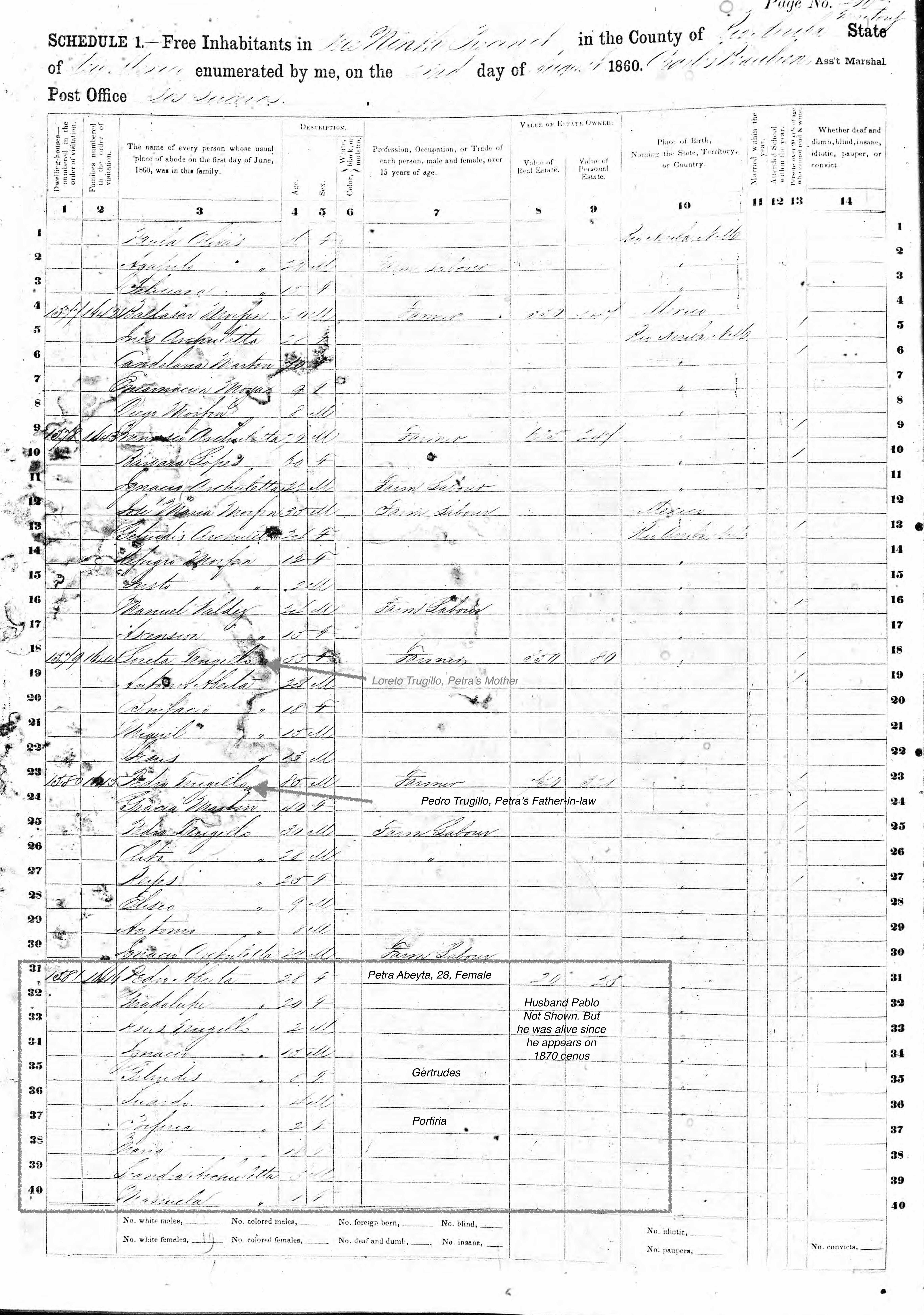 Census | Pablo TRUGILLO — View this family 1870 (Age 39 years) |