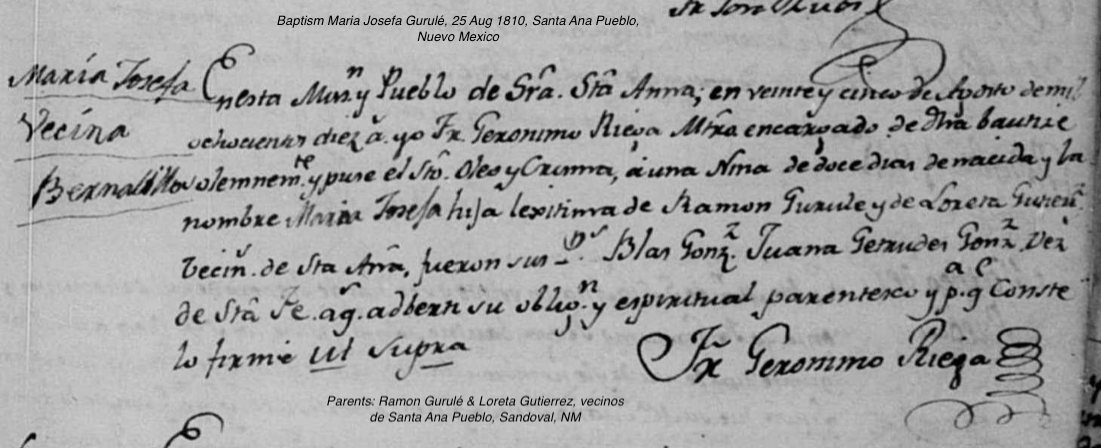 Maria Josefa GURULÉ Baptism: August 25, 1810 24 — Santa Ana Mission, Santa Ana, Sandoval, New Mexico |