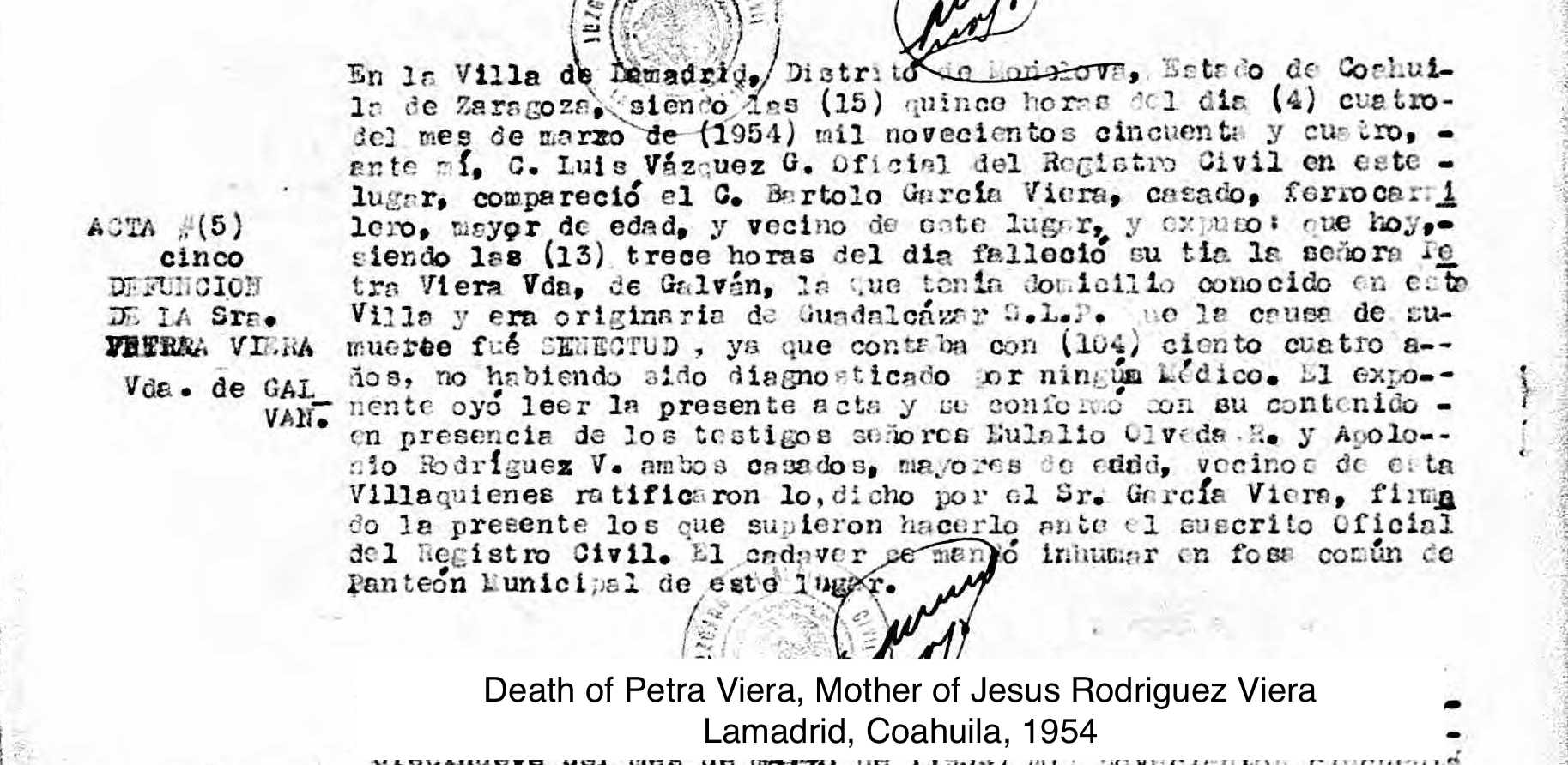 | Event | Border crossing papers verifies birth record from Lamadrid, Coahuila. |