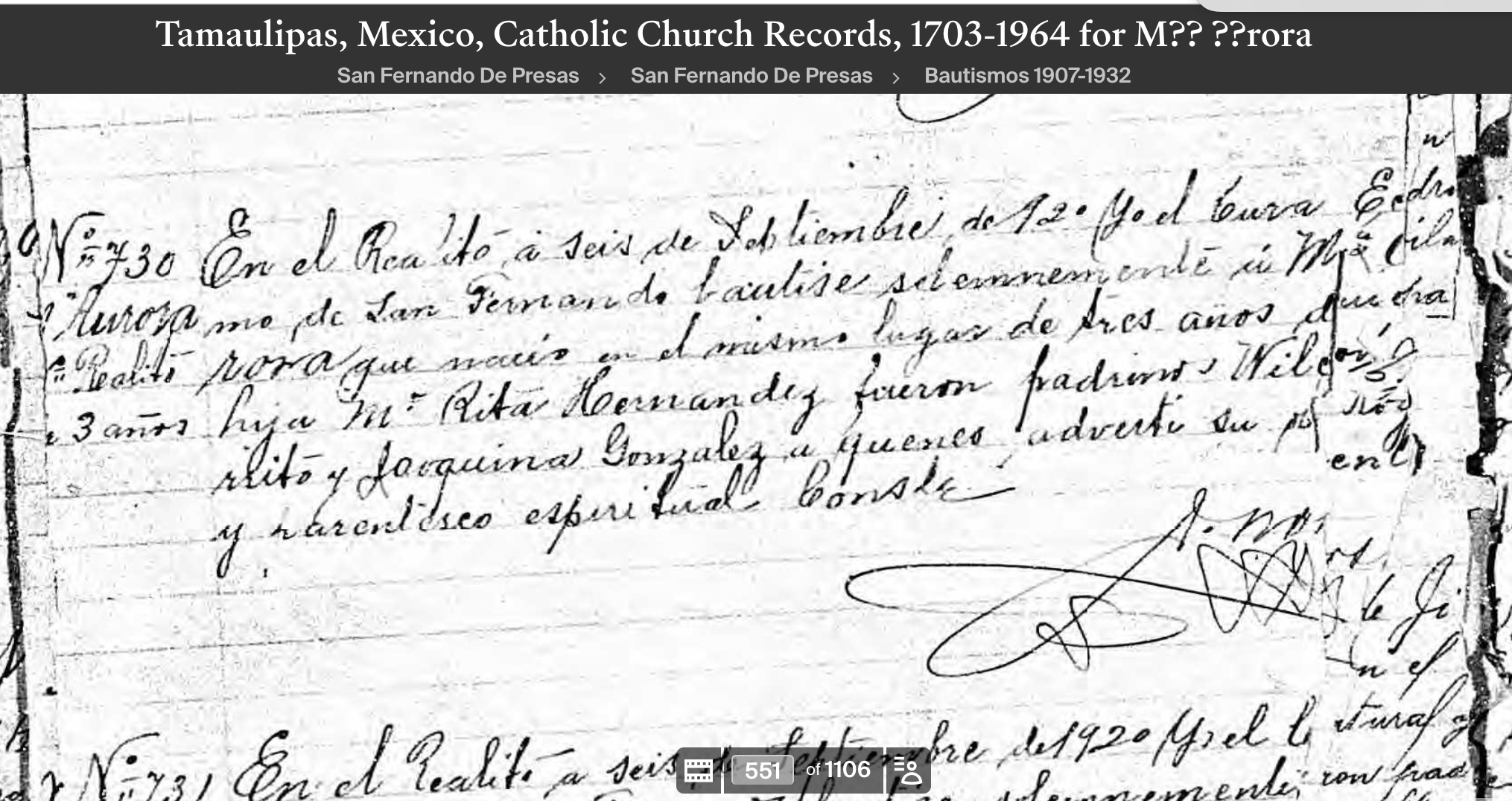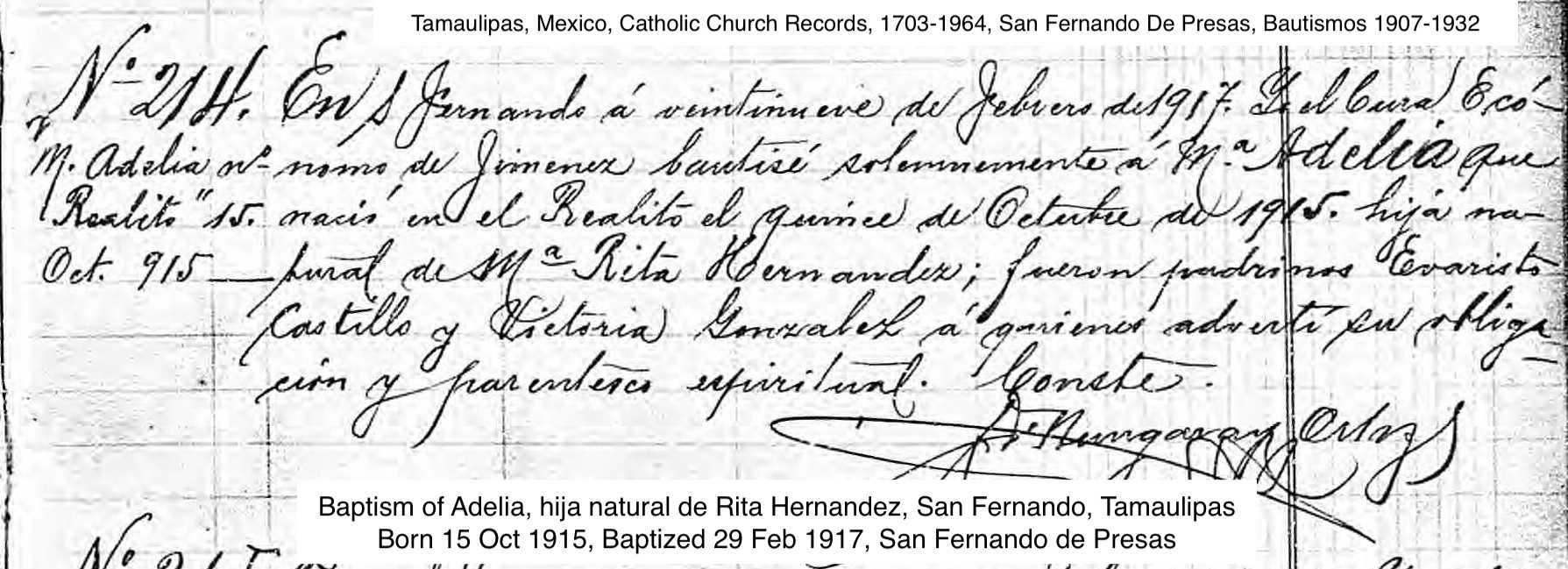 Rita HERNANDEZ Birth: about 1890 — San Fernando De Presas, Tamaulipas, Mexico |