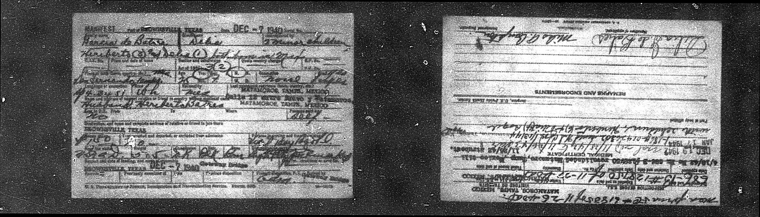 Fact | Border Crossings Note: Delia and her Batres family crossed the border at Brownsville Texas many times. Her card was issued in 1940 and reissued several times after that.