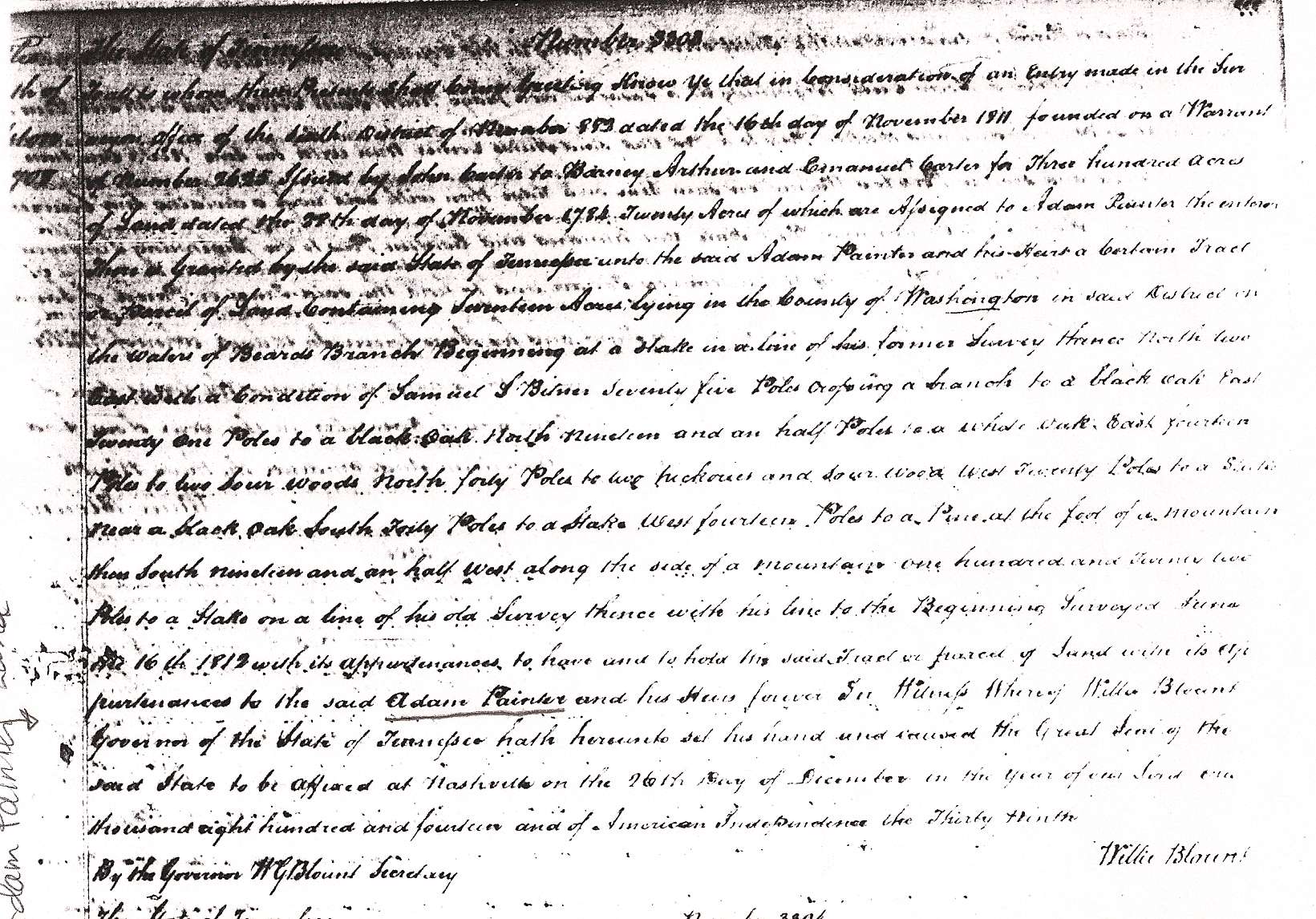 | Property | In 1792 Adam Painter obtained a deed to 183 acres in Washington Co TN. |