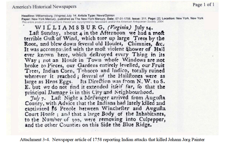 Hans Gorg BENDER PAINTER Birth: before 1715 — Palatinate Germany Death: July 1758 — Shenandoah Co VA |