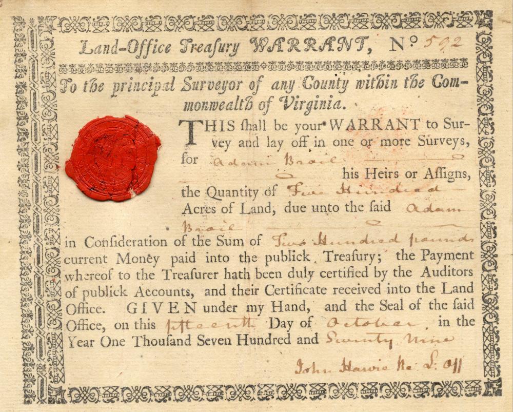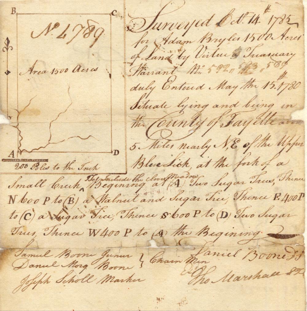 Property | 1782 (on the date of death) Note: Adam Broyles received several land patents and at least two surveys were done for him by Daniel Boone. This land was in Fayette County. He probably never moved onto this land.