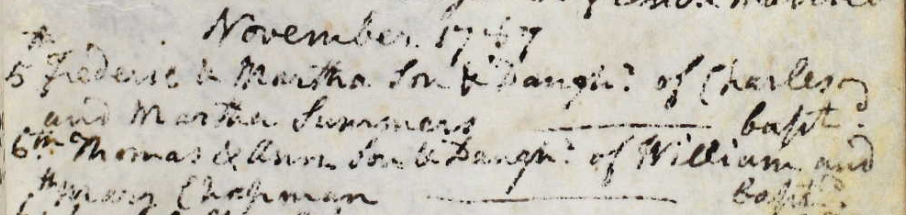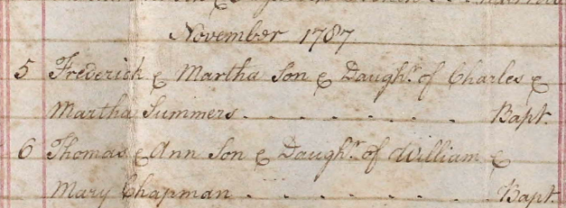 Baptism of a brother | Frederick SUMMERS November 5, 1787 (Age 15 years) |