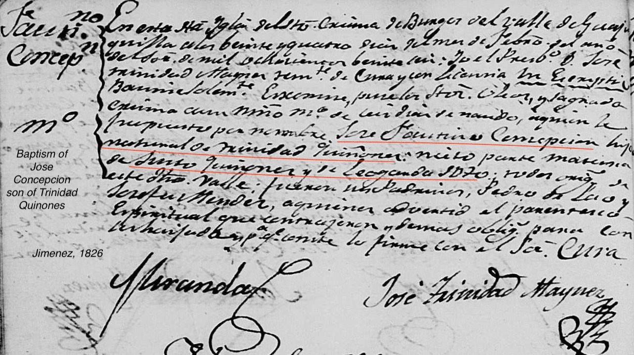 Jose Faustino Concepcion QUIÑONES Baptism: February 24, 1826 31 — Santo Cristo de Burgos, Jiménez, Chihuahua, Mexico |