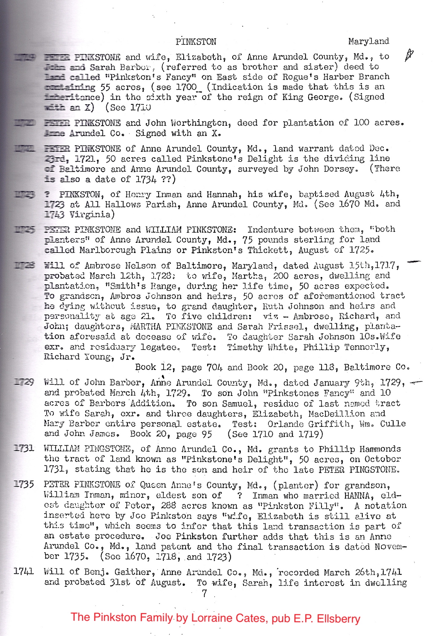 Peter PINKSTON Birth: March 19, 1718 24 — St Anne's Parish, Anne Arundell Co, MD Death: |