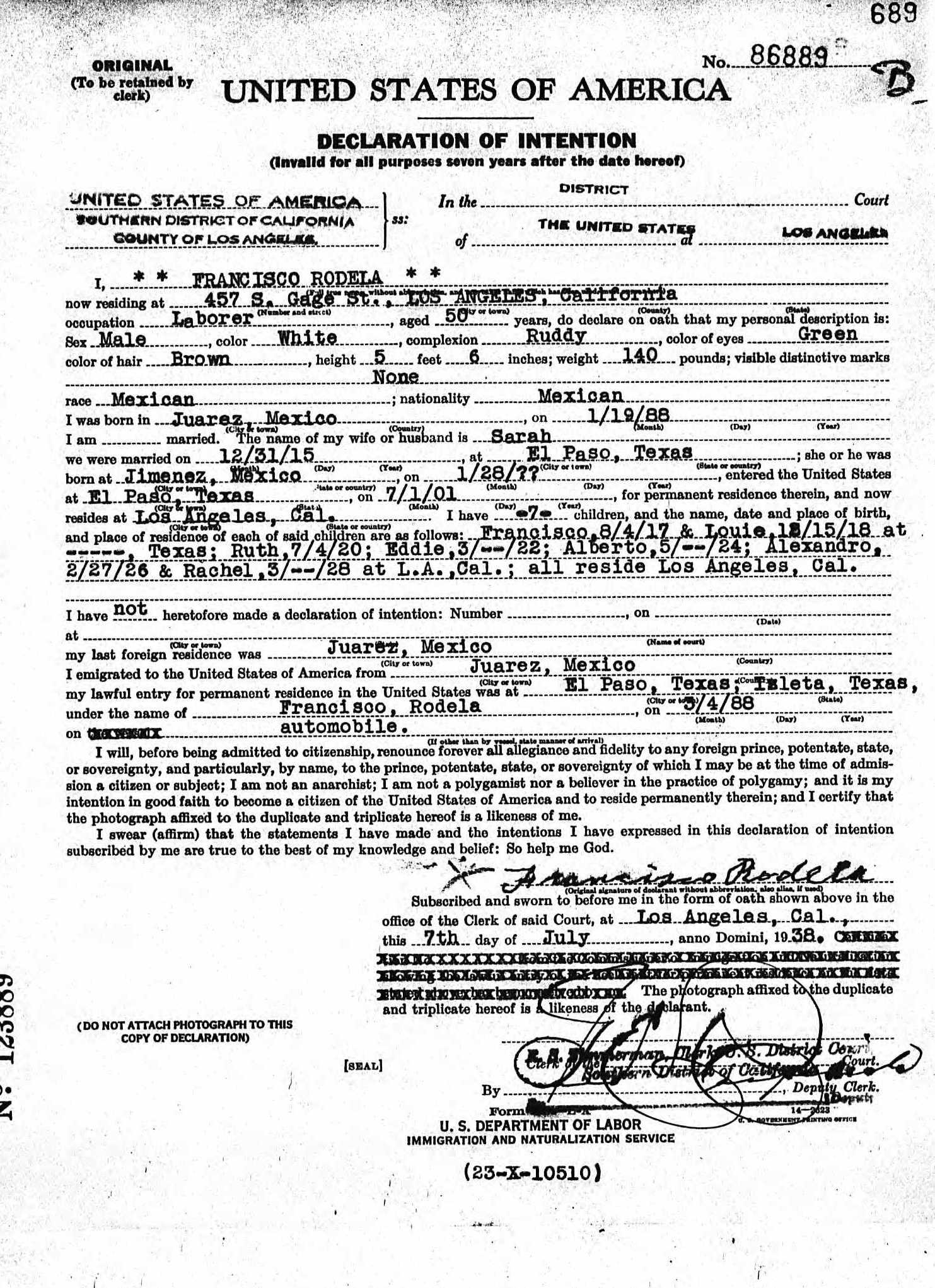 Event | Francisco RODELA — View this family Naturalization 1938 (Age 45 years) |