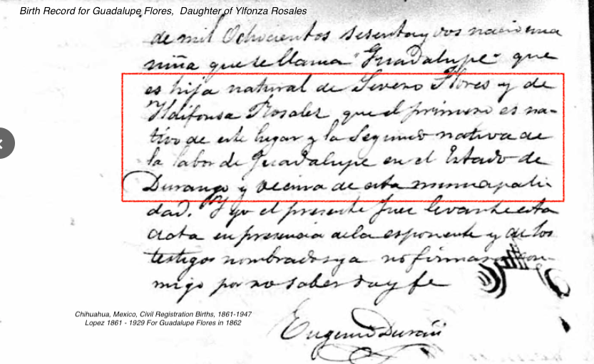 | Media object | Format: image/png Image dimensions: 833 × 511 pixels File size: 354 KB Type: Certificate Note: This birth record for Guadalupe shows Yldefonza originated from Labor de Guadalupe Durango