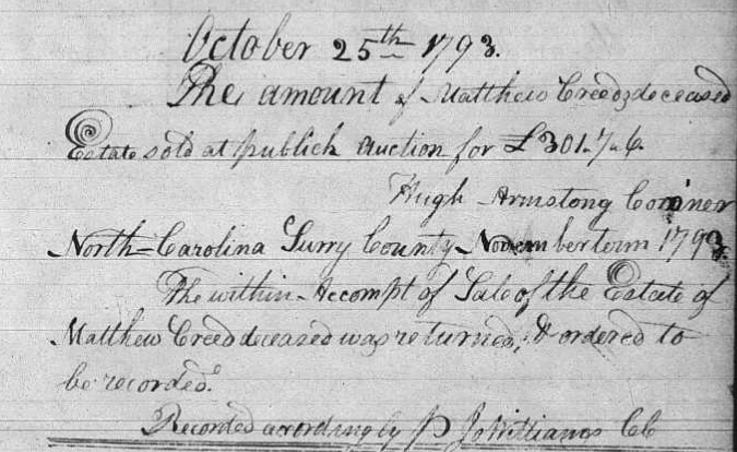 Matthew CREED Sr Birth: 1730 — VA Death: 1793 — Surry Co, NC |