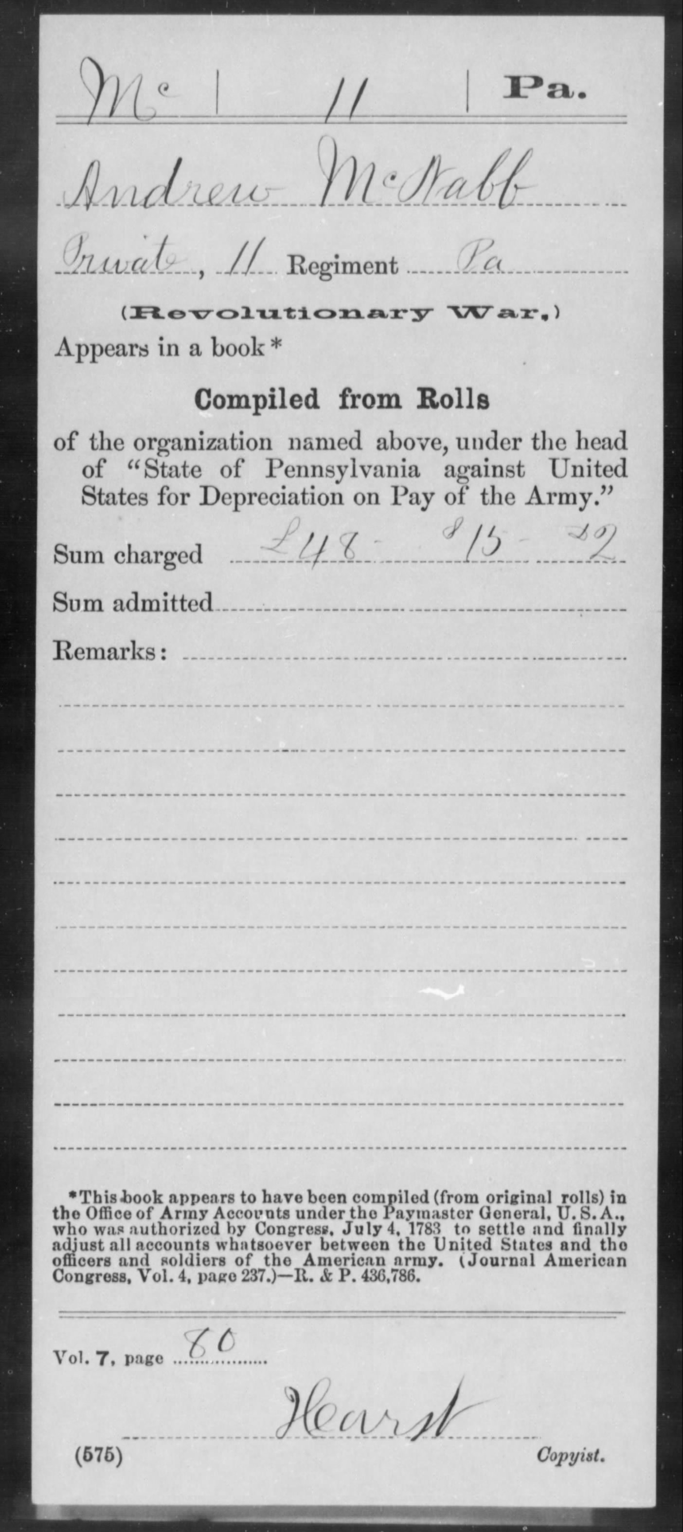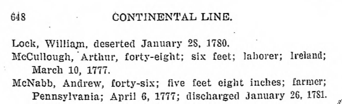 Military | Revolutionary War Service 1777 (Age 46 years)Note: Some genealogist report that Andrew McNabb came from PA and served in the Continental Army.
