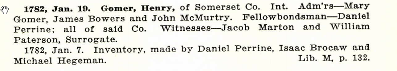 Henry GOMER Death: January 1782 — Somerset Co NJ |