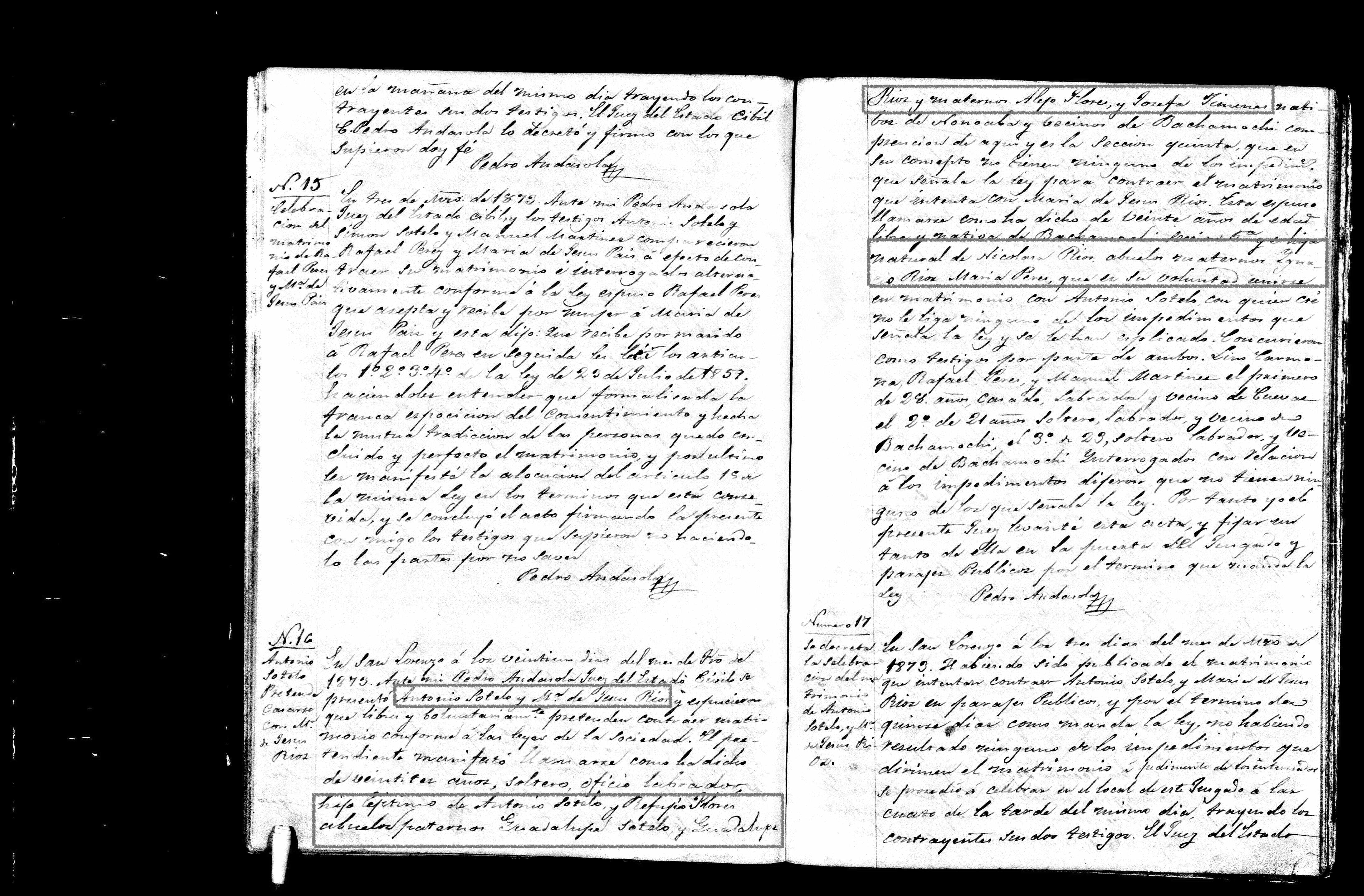 Marriage: February 22, 1873 — San Lorenzo, Doctor Belisario Domínguez, Chihuahua, |