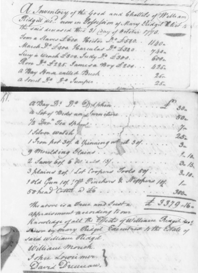 William? RIDGILL Death: 1794 — Clarendon Co, Sumpter District, South Carolina |