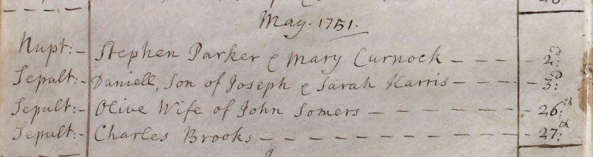 Death of a mother | Olive TURNER? May 1751 (Age 6 years) Note: Buried May 26, 1751 according to Cam Parish Records.