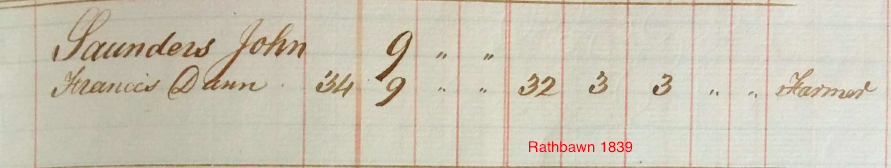 John SAUNDERS Birth: 1809 — Rathbawn (or Rathbane) Townland, Wicklow, Ireland |