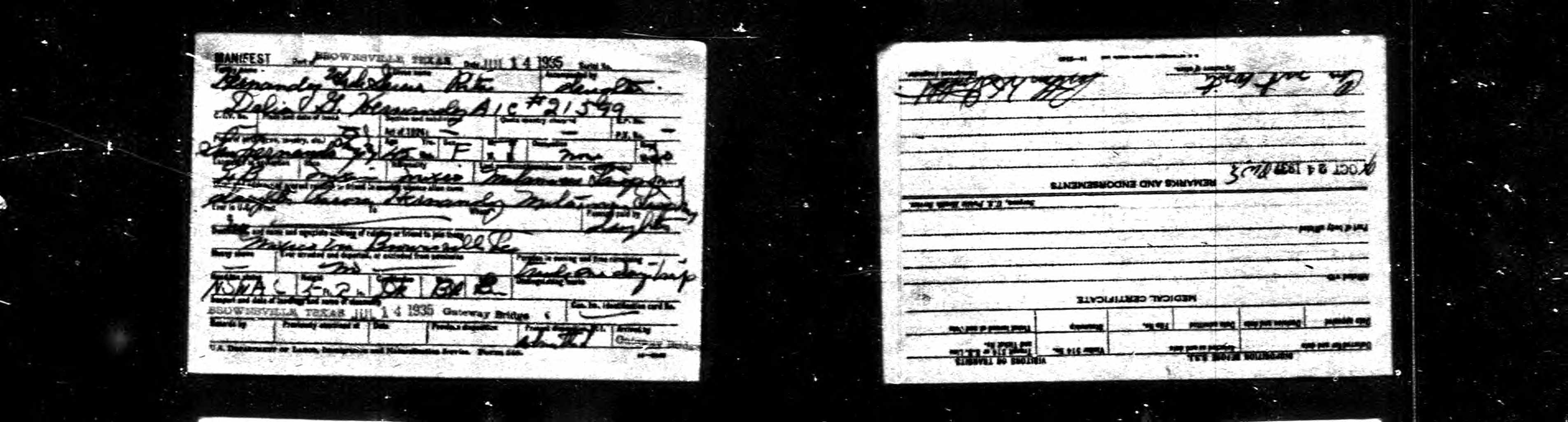 | Event | Border Crossings from Mexico to U.S., 1895-1964 Rita Hernandez Vda De Garcia Race/Nationality: Mexican (Latino) Arrival Age: 45 Birth Date: abt 1890 Birth Place: San Fernando Arrival Date: 14 Jul 1935 Arrival Place: Brownsville, Texas, USA Accompanied by: Daughter Delia G Hernandez Departure Contact: Daughter Aaron Hernandez |