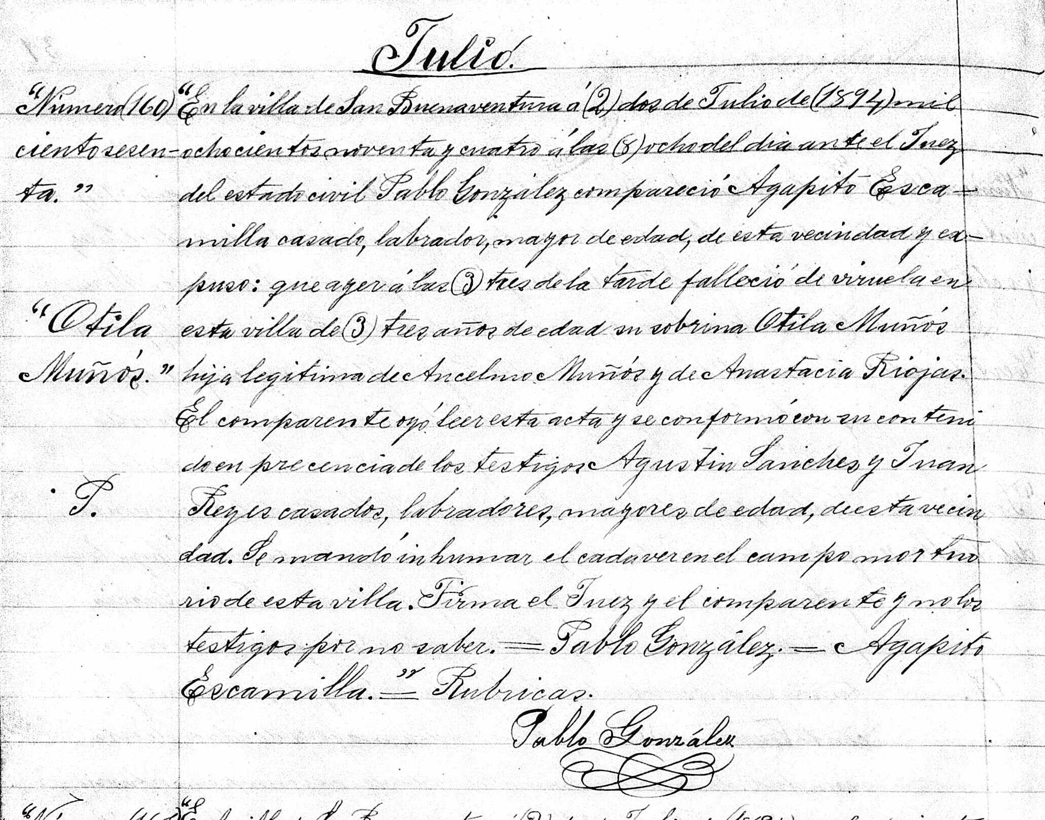 Death of a daughter | Otilia MUÑOZ CASTRO I July 1, 1894 (Age 29 years) |