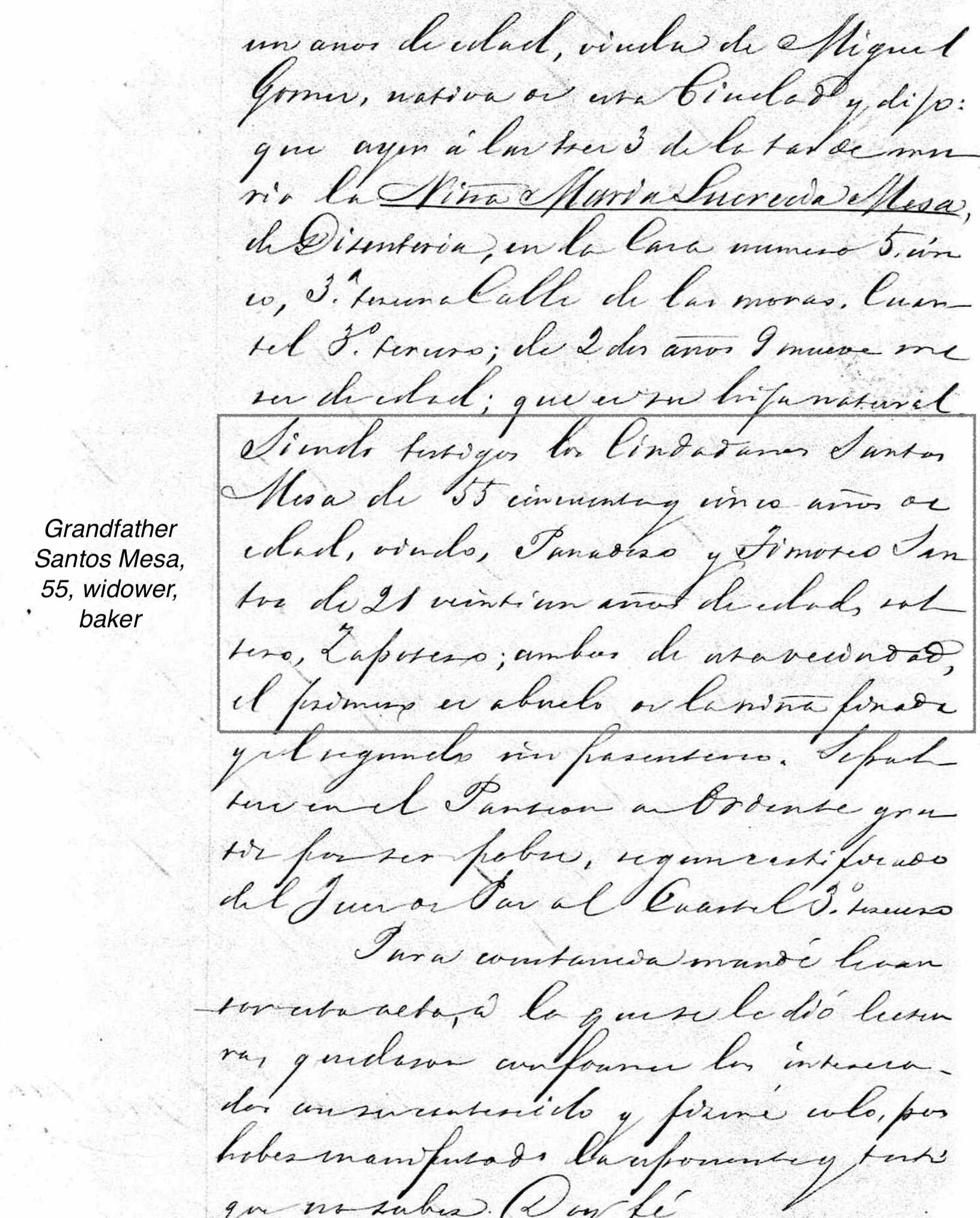 Death of a maternal grandfather | Santos MESA June 30, 1885 (Age 25 years) Age: 72 |