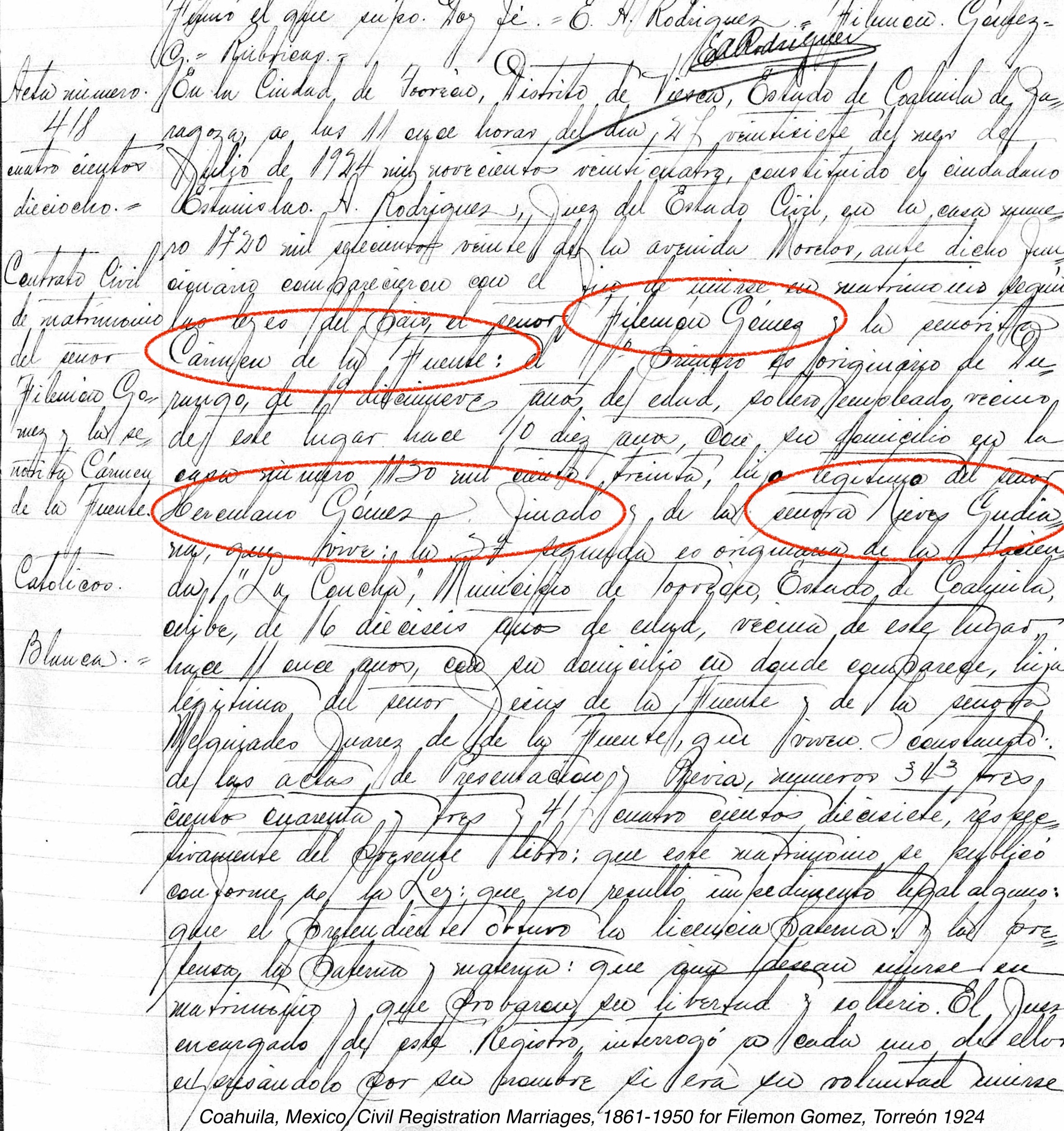 Marriage: August 5, 1879 — Durango, Durango, Mexico |