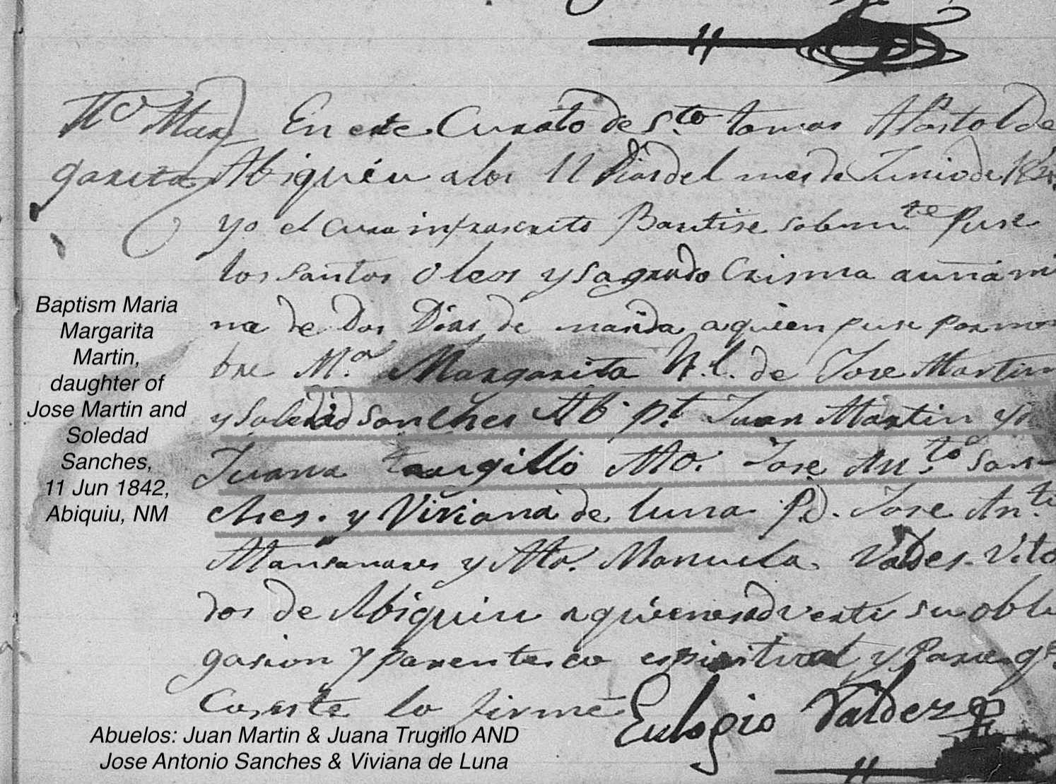 Maria Margarita MARTIN Baptism: June 11, 1842 — Santo Tomás Apóstol, Abiquiu, Rio Arriba, New Mexico |