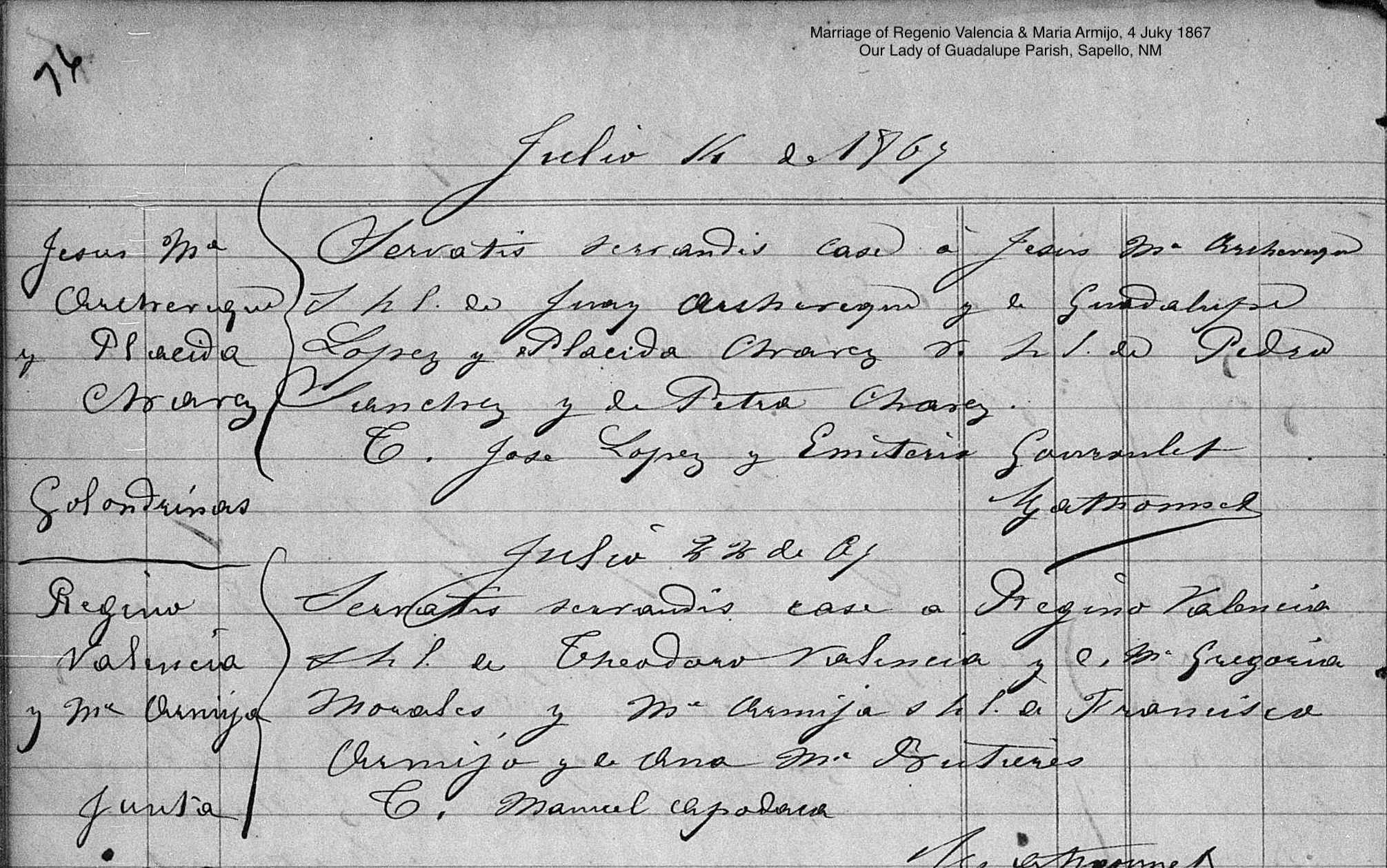 Religious marriage | Maria ARMIJO — View this family July 4, 1867 |