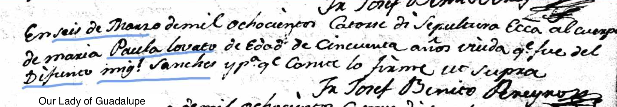 Burial of a mother | Maria Paula LOBATO March 6, 1814 (Age 20 years) Note: Our Lady of Guadalupe burial records
