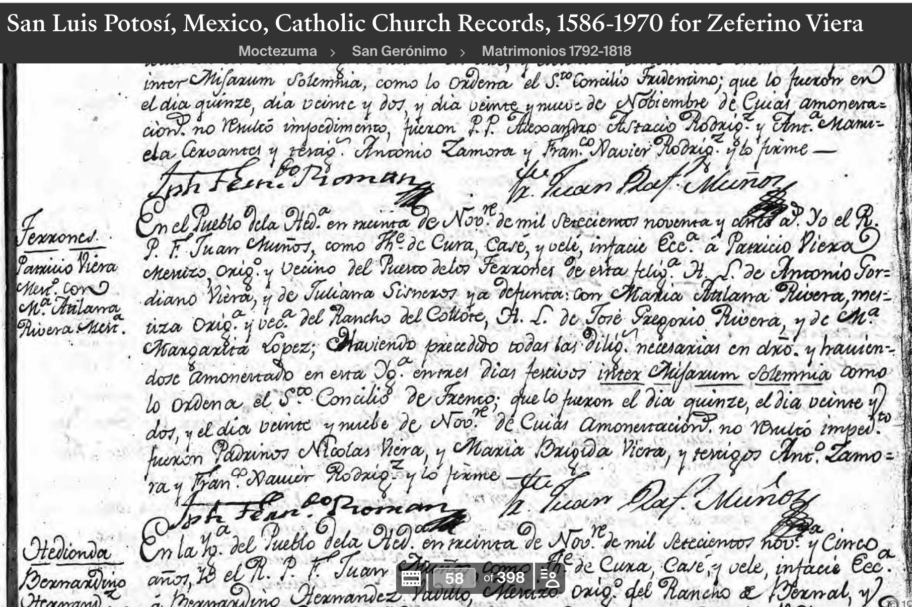 Marriage of a child | Patricio VIERA — Maria RIVERA — View this family November 30, 1795 |