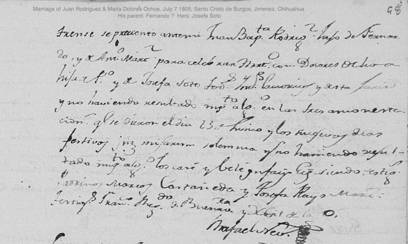 Marriage: July 7, 1805 — Santo Cristo de Burgos, Jimenez, Chihuahua, Mexico |