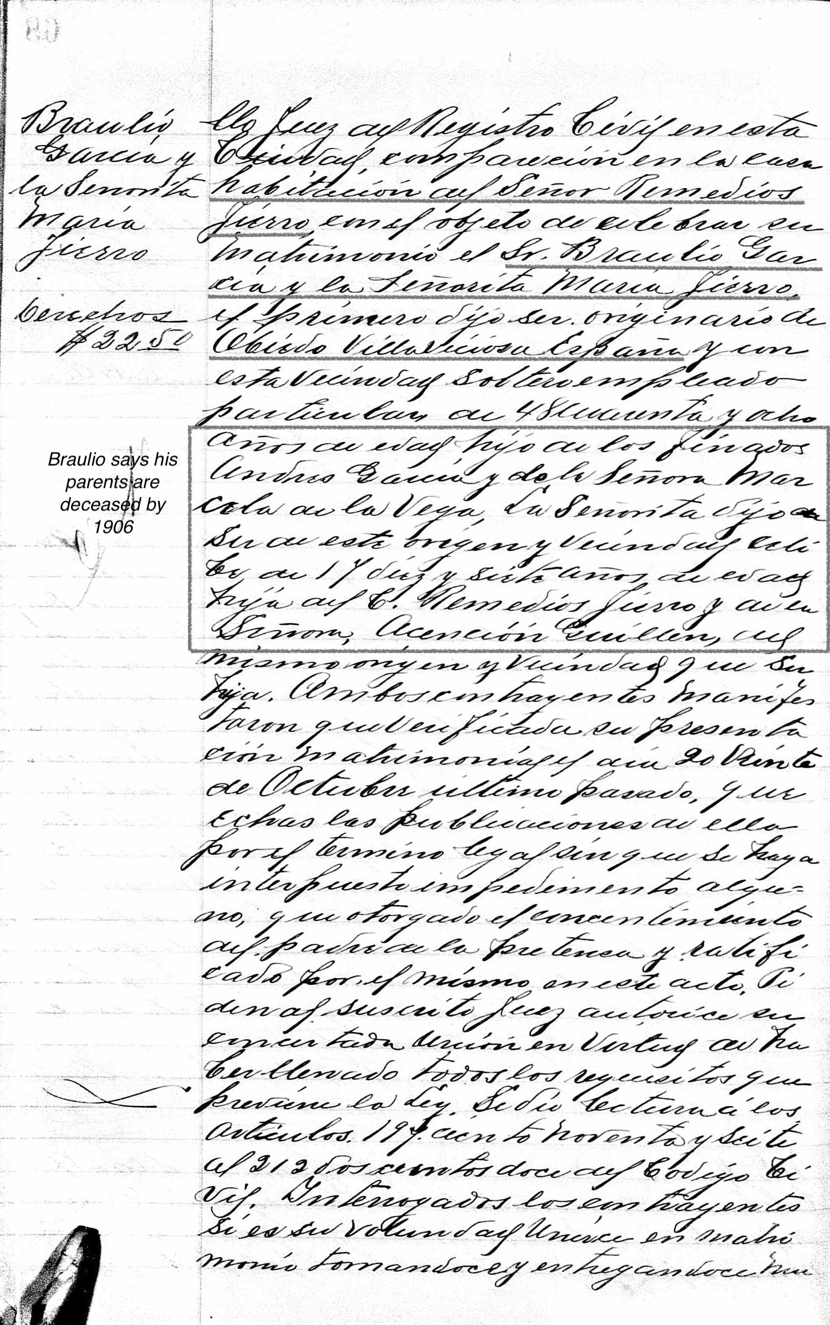 Death of a father | Braulio GARCIA before 1923 (Age 20 years) Note: Braulio was already dead in 1923 when his daughter Victoria was married.