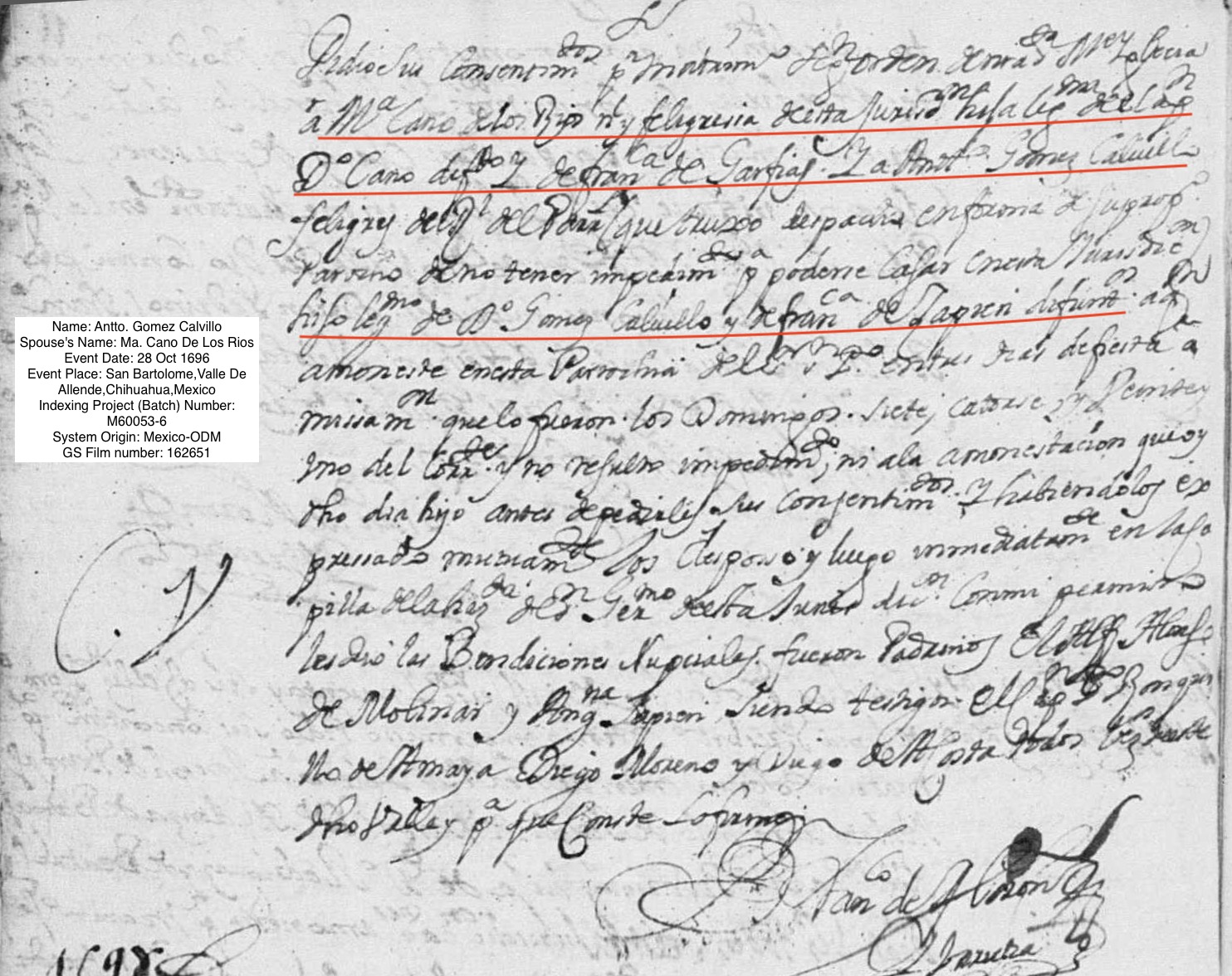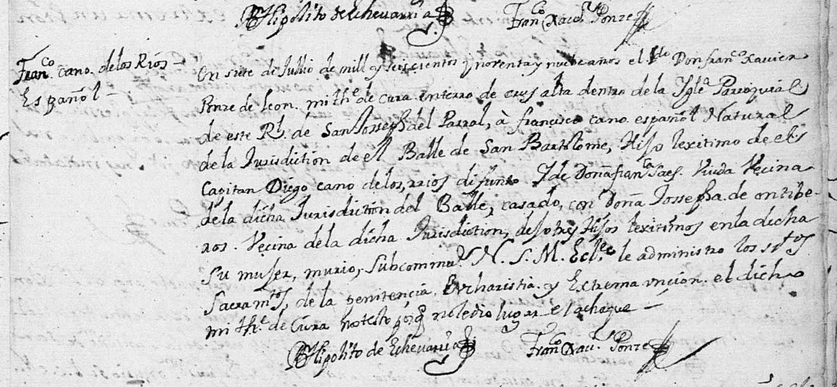 Miguel CANO de los RIOS Baptism: October 30, 1672 44 35 — San Bartolome, Valle De Allende, Chihuahua, Mexico Burial: December 29, 1743 — Valle de San Bartolome, Chihuahua, Nueva Vizcaya |